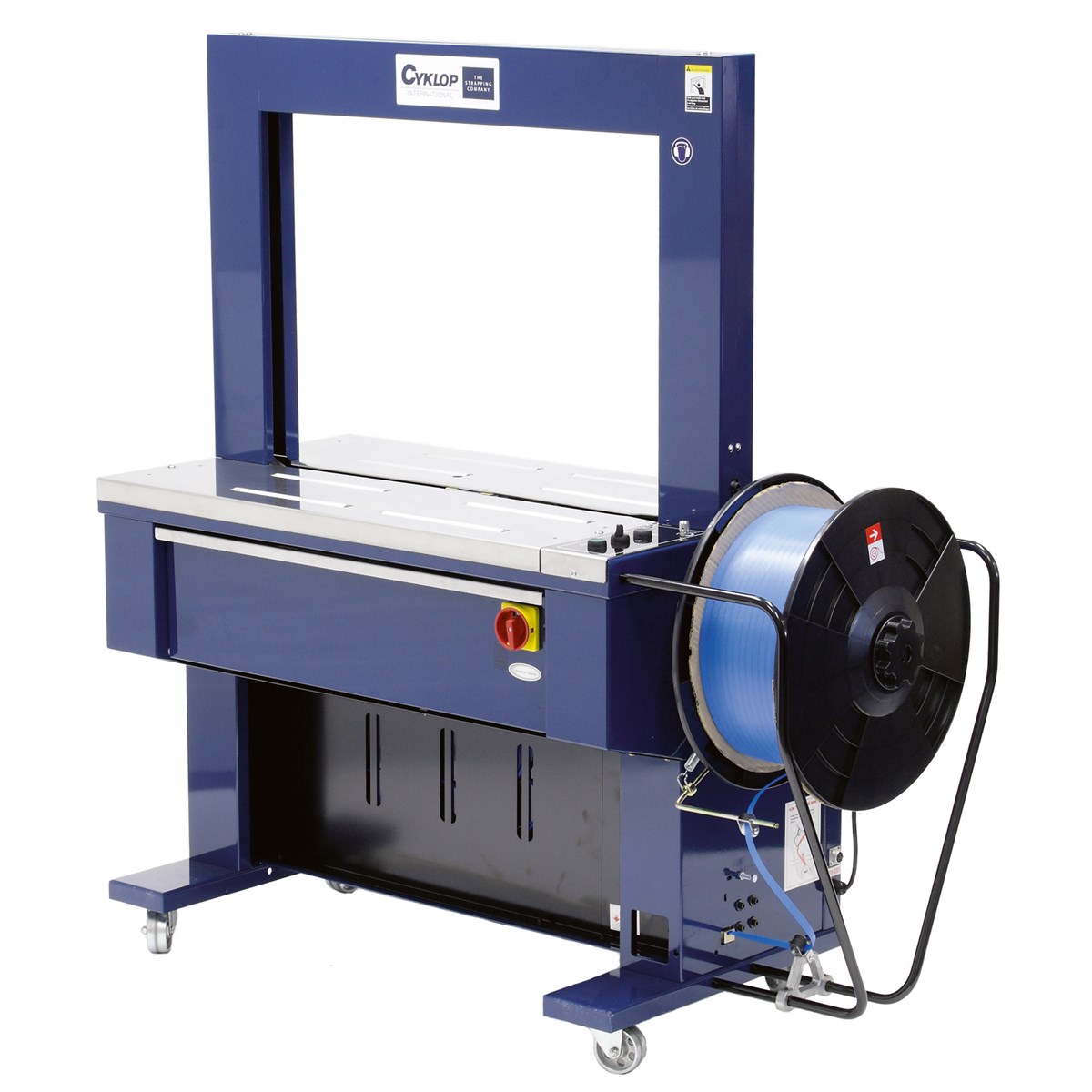 Automatisk bandningsmaskin för bandning av paket och gods med PP-band 9 eller 12 mm. Minsta godsmått: 130 x 20 mm. Max. godsmått: 820 x 570 mm.