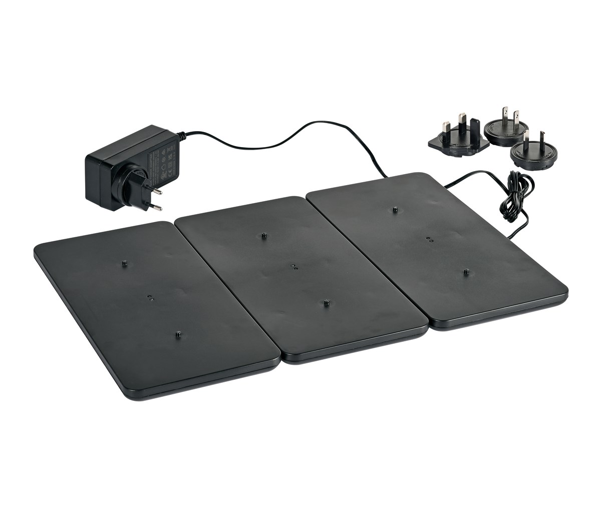 Laddningsstationer möjliggör en praktisk och platsbesparande laddning av flera LED-ljus. Laddningsstationerna levereras dessutom med en extra adapter, vilket minskar behovet av vägganslutna laddare från fyra till endast en eller två. 3 laddplattor med plats för 6 lampor. LED-ljus säljs separat.