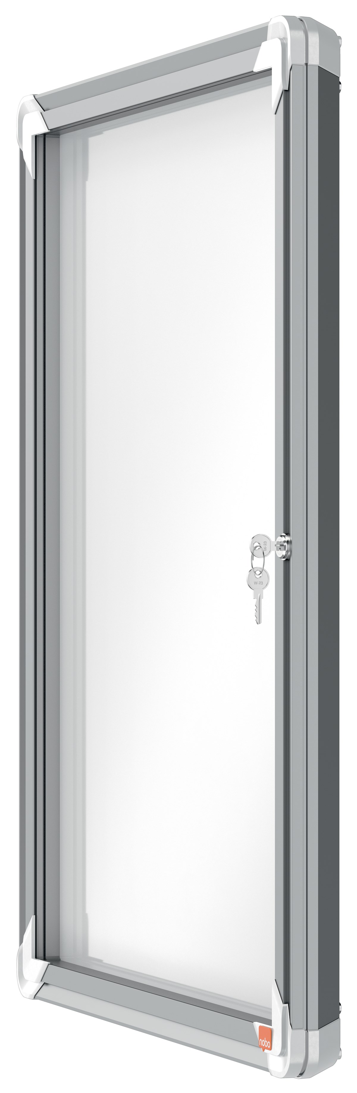 Låsbar magnetisk anslagstavla med säkerhetsglasdörr på gångjärn samt sidolås. Modern snygg ramkant av aluminium och hörnfästen för genomgående montering. Utmärkt magnetisk anslagstavla för att säkert visa dina meddelanden. Mått: 493 x 667 x 43 mm. 10 års garanti.