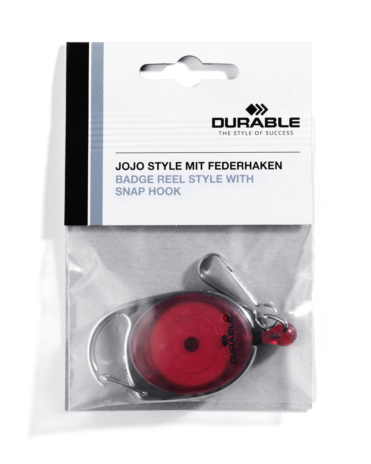 Stilren jojo i oval form med metallhake. För t.ex. namnskyltar och passerkortshållare. Fäst korthållaren enkelt med hjälp av haken. Utdragbar upp till 80 cm.