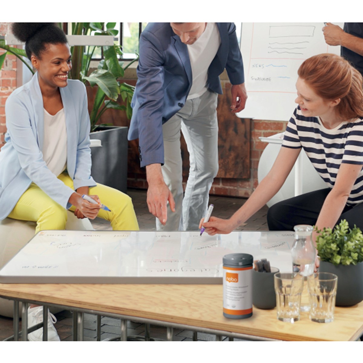 Dessa rengöringsservetter för whiteboard är idealiska för att hålla din whiteboard i perfekt skick. Perfekt för kontor, skolor och hemmakontor, detta paket innehåller 100 förfuktade biologiskt nedbrytbara våtservetter för dagligt underhåll. Tuff mot smuts och fläckar på alla whiteboardytor, dessa våtservetter kommer i en behållare tillverkad av 100% pre-consumer återvunnen plast. Det lätta gångjärnsförsedda locket säkerställer snabb åtkomst och förhindrar uttorkning, medan den perforerade kanten tillåter dispensering med enkel avtorkning. För bästa resultat, använd med en Nobo whiteboard-sudd för att hålla din whiteboard i toppskick.