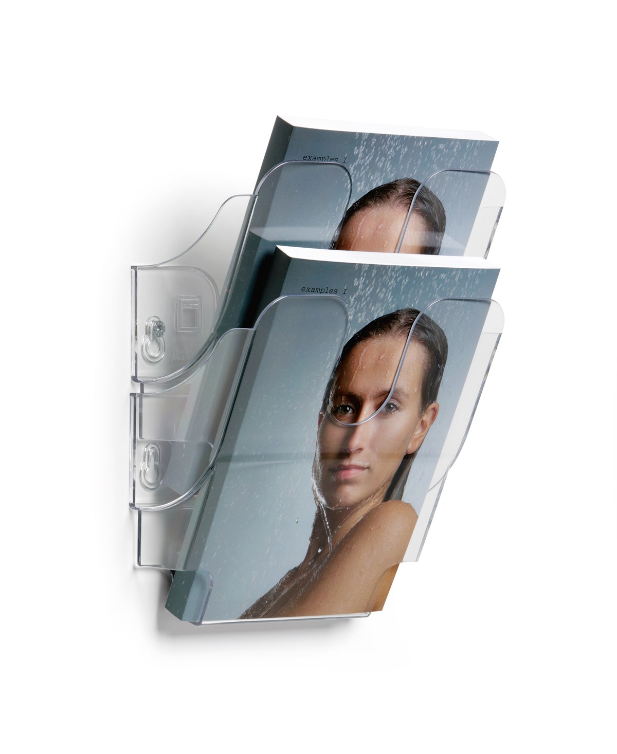 Blankettfack, broschyrställ, postfack - FLEXIPLUS är en serie med platsbesparande, flexibla och väggmonterade hållare för broschyrer, tidskrifter, blanketter och annan information i A5-format. Varje fack har en kapacitet på 24 mm tjocka buntar. Detta är ett komplett set med 2 fack i stående format där facken kan monteras ihop eller användas var för sig.