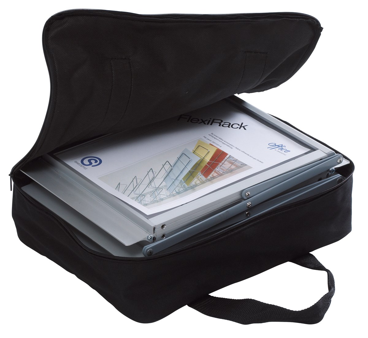 Tillverkat i naturanodiserad aluminium/akrylplast med bottenplatta i silverlackerad plåt. 6 fack. Lätt att fälla ihop och smidigt att ta med vid presentationer och mässor. Mått: 1460 x 285 x 370 mm. Tygväska medföljer. Frakt tillkommer, kontakta oss för prisuppgift.