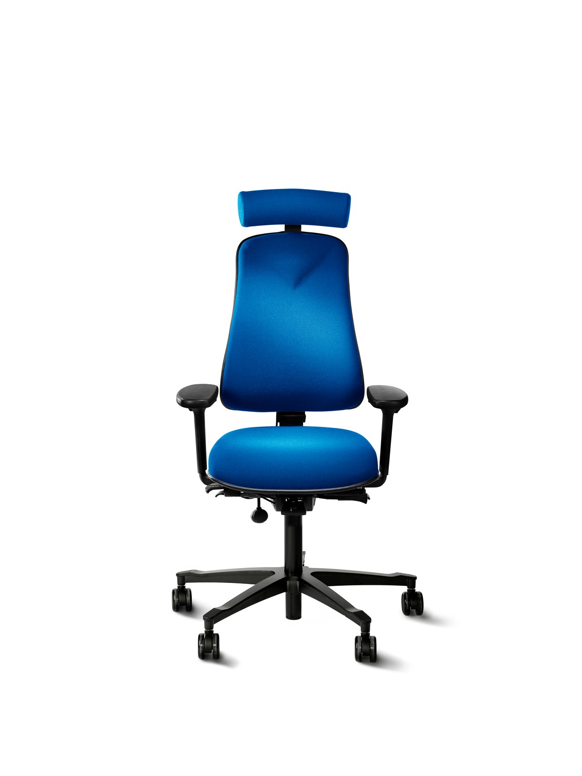 Höganäs mest sålda stol. Bra svankstöd tack vare den unika, flexibla och justerbara ryggen. Justerbar sitthöjd och sitsdjup, vinklingsbar och låsbar sits. Balanserad och låsbar gunga. Hjul för hårda golv. Rygg: 41 x 54 cm. Sits b x d: 43 x 47 cm. Sitthöjd: 40–57 cm. Tyg: Fame.