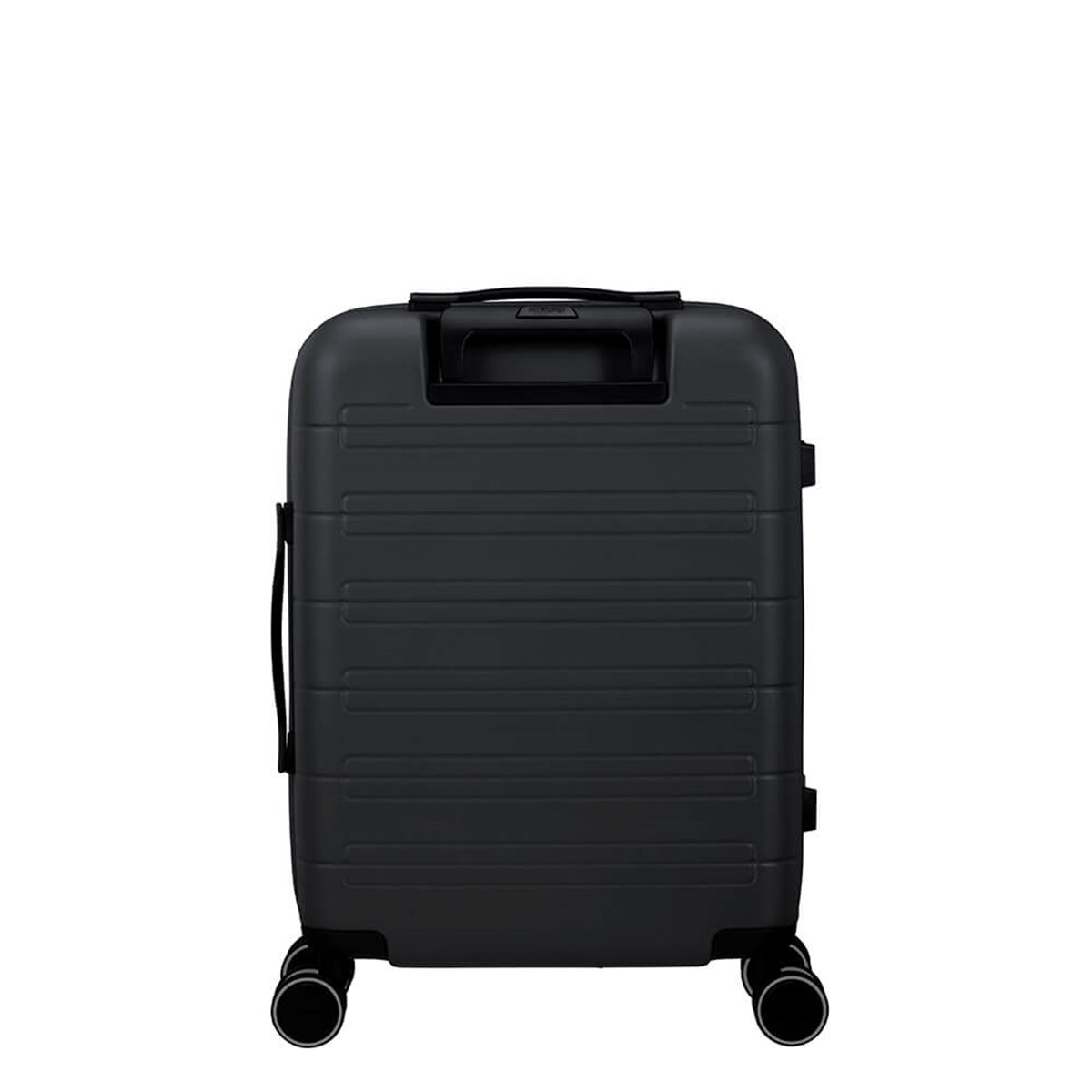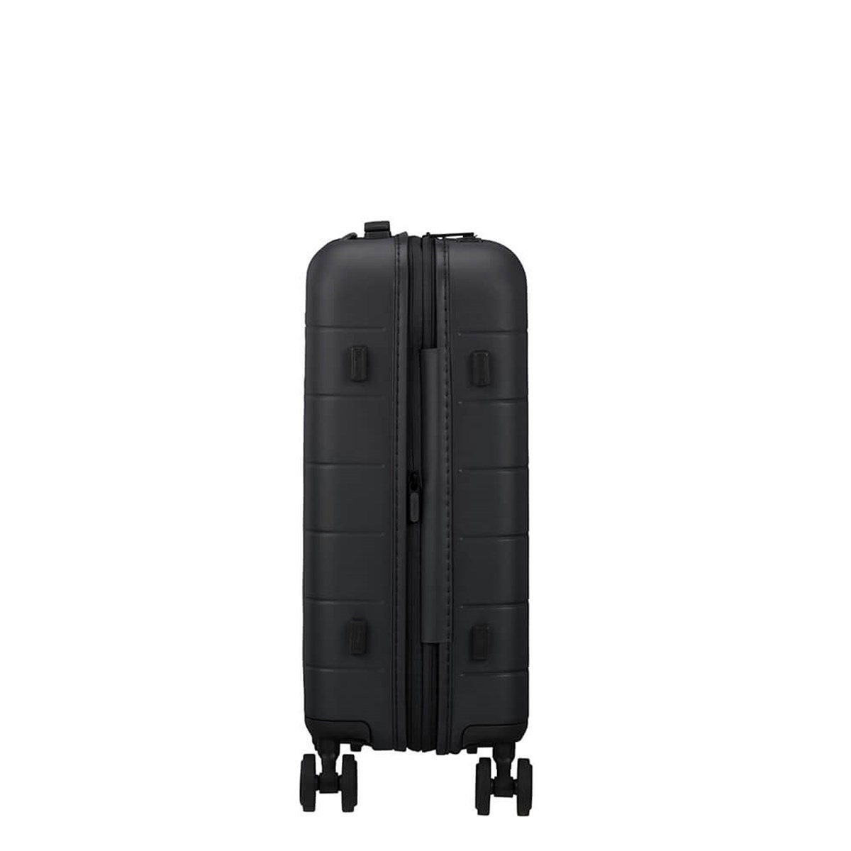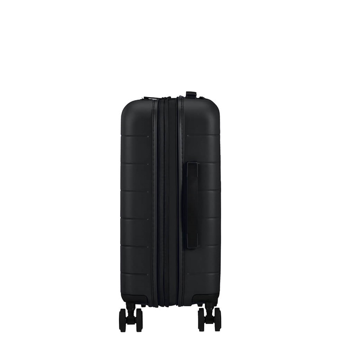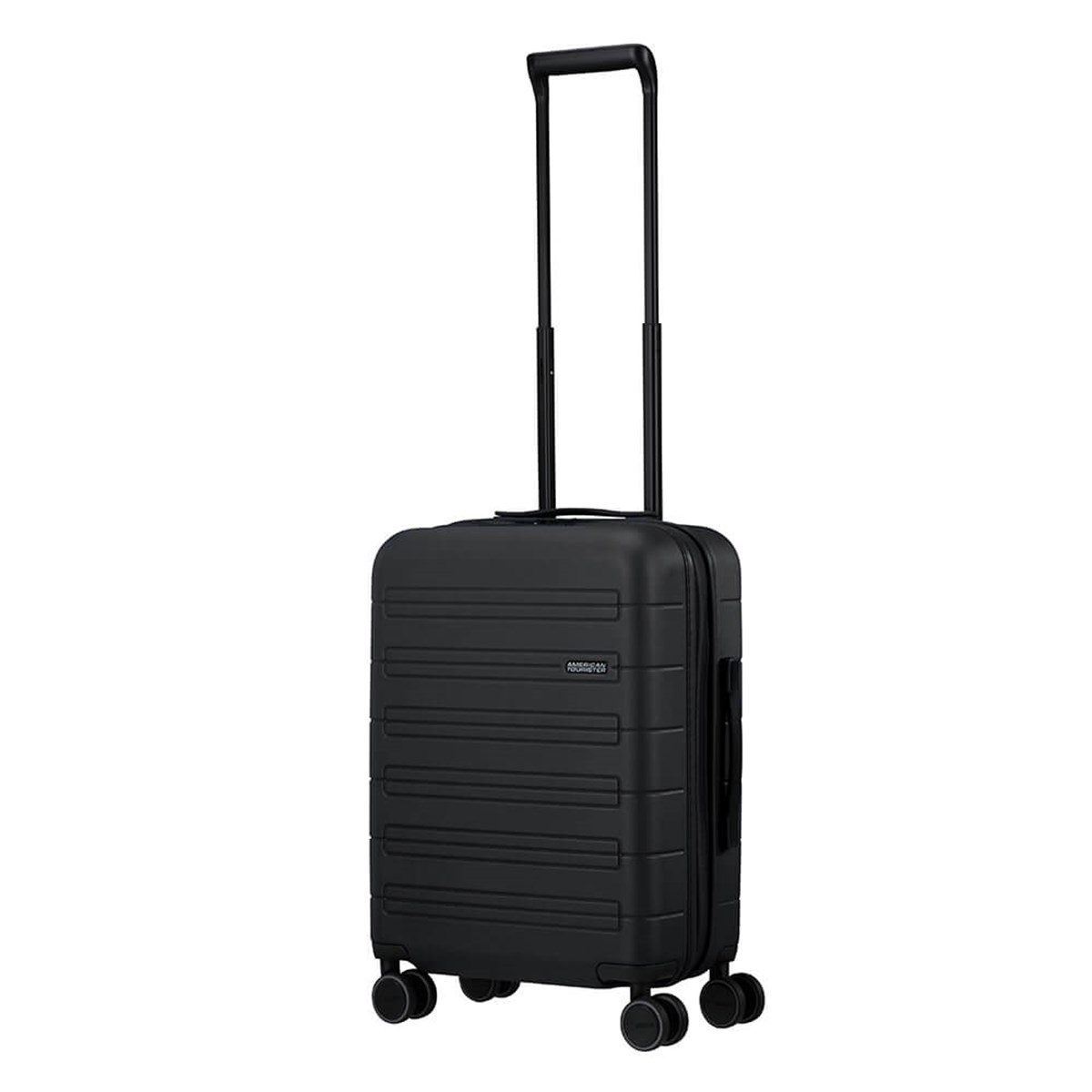 American Tourister, Nova Stream Spinner 55/20 Expand är godkänd som kabinväska, är expanderbar, har ett fast tresiffrigt TSA-kombinationslås och smidigt rullande dubbla hjul. Ergonomiska handtag. Matt finish. Väskan har måtten 40 x 55 x 20/23 cm, rymmer 36/41 L och väger 2,6 kg. Den är tillverkad av 100% polykarbonat och rPet Polyester av 9 återvunna PET-flaskor med Recyclex-materialteknologi.
