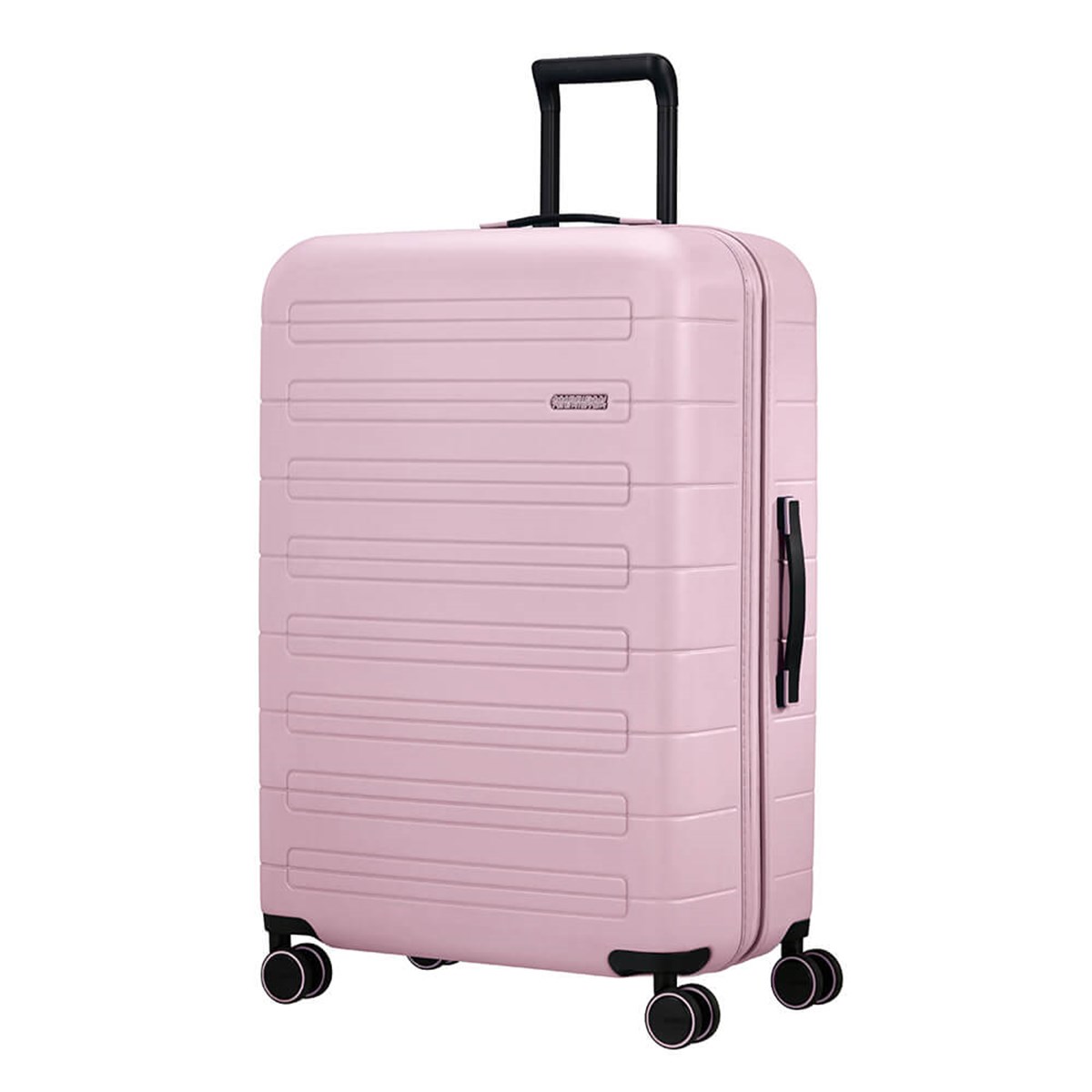 Nova Stream Spinner 77/28 Expand är perfekt för resor på 2 veckor med hela familjen, är expanderbar, har ett fast tresiffrigt TSA-kombinationslås och smidigt rullande dubbla hjul. Ergonomiska handtag. Väskan har måtten 51.5 x 77 x 29.5/34 cm, rymmer 103/121 L och väger 4.3 kg. Den är tillverkad av 100% polykarbonat och rPet Polyester med 15 återvunna PET-flaskor och Recyclex-materialteknologi.