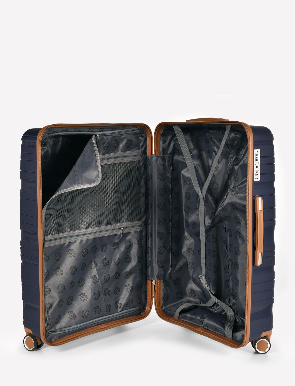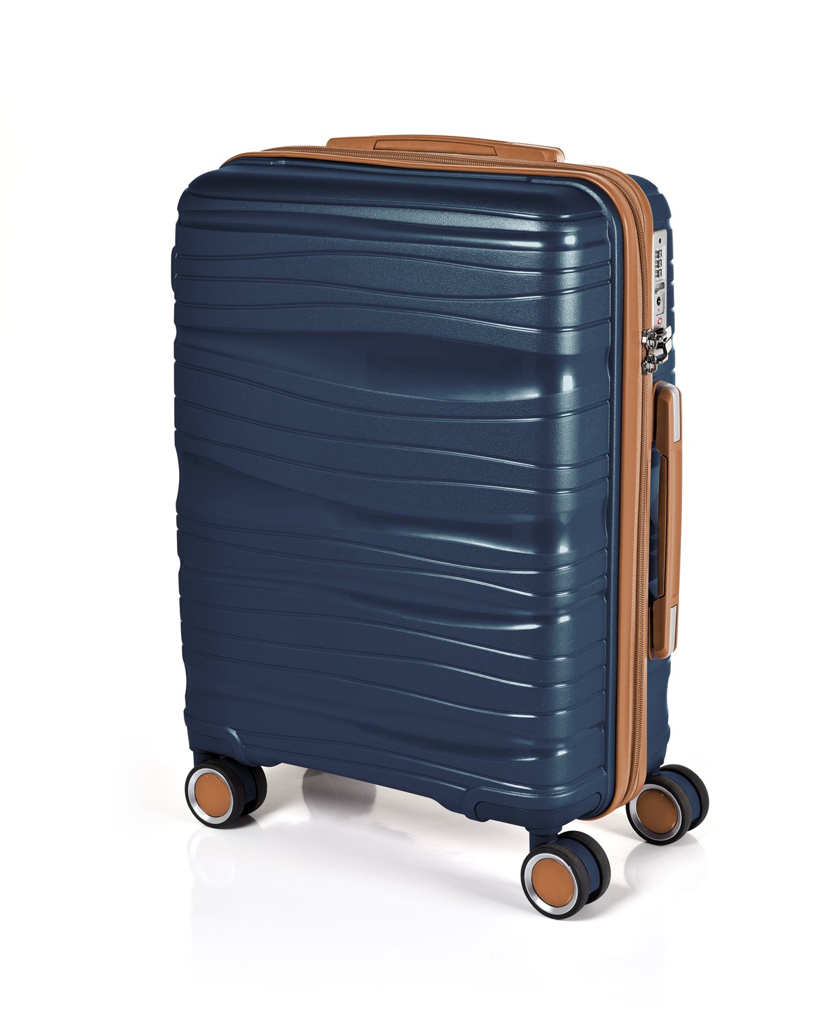 Lätt och slitstark PP-plast Fyra dubbla gummerade hjul Inbyggt TSA-lås Antistöld dubbeldragkedja