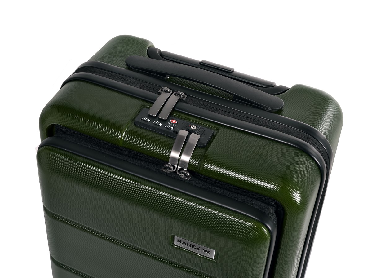 Lätt och slitstark PP-plast Frontfack för enkel åtkomst till dator Fyra dubbla gummerade hjul Inbyggt TSA-lås
