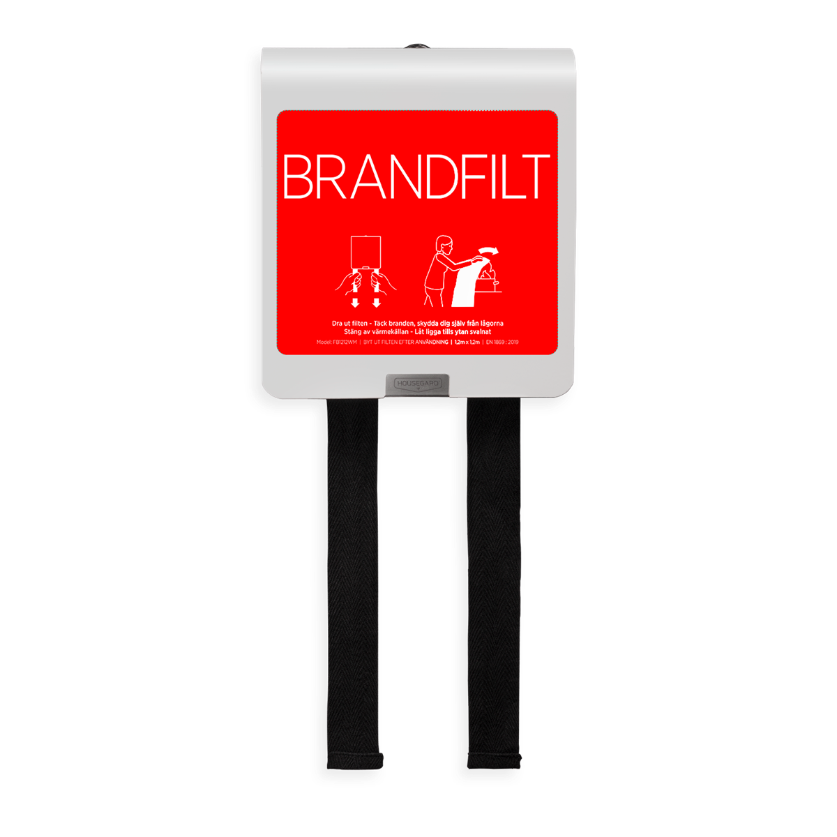 En brandfilt rekommenderas som ett komplement till en brandsläckare. Med en brandfilt kan du snabbt och effektivt släcka mindre bränder innan de orsakar större skada i hemmet. Montera brandfilten på väggen, gärna i anslutning till köket där bränder oftast uppstår. Röda etiketter ingår med användarinfo på de nordiska språken. Mått: 120x120 cm. 5 års garanti.