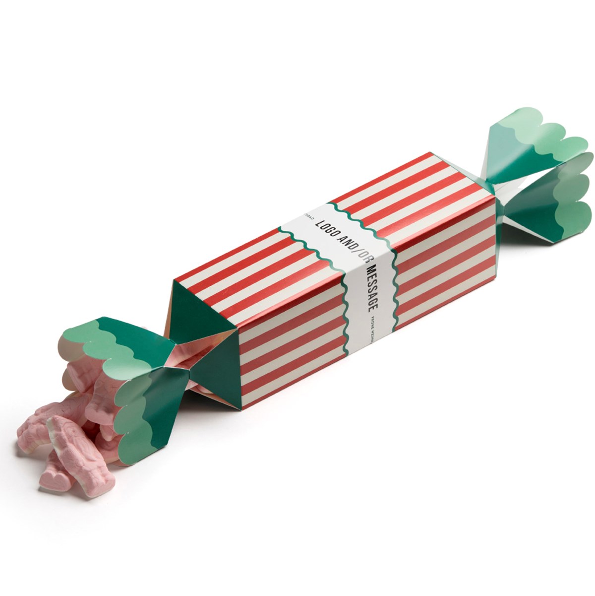 Julig smällkaramell med 350 g julskum. Julskummet är svensktillverkat och fritt från palmolja och gluten. Tryck din logga eller hälsning och ge bort den perfekta julgåvan. Produkten är FSC-certifierad. Vattenbaserade färger och klimatbalanserad.