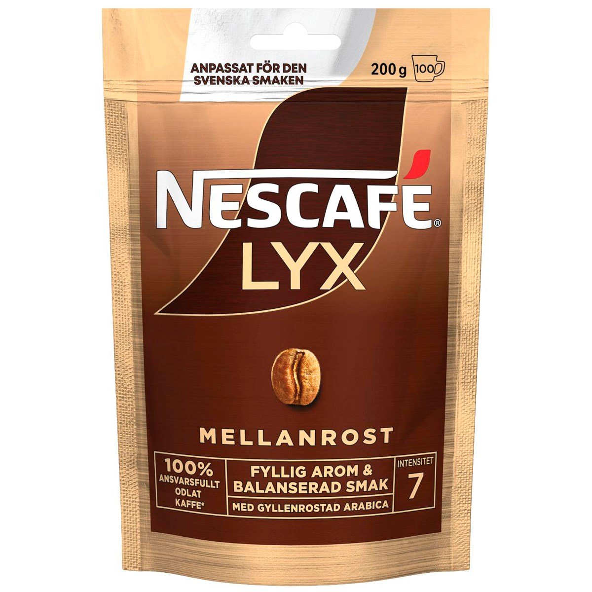 Upptäck NESCAFÉ Lyx med en distinkt arom och fyllig smak. En kombination av optimal rostning och kaffets diskreta fruktnoter ger en perfekt balanserad kopp kaffe. Receptet i den klassiska mörkrostade lyxblandningen med sin balanserade smakprofil och långa, fylliga eftersmak har förbättrats ytterligare för att göra din kaffeupplevelse till en ren njutning. Hemligheten bakom är att vi maler högvuxna arabicabönorna tio gånger finare som slussas in i kaffeblandningen. På så sätt får vi fram en rikare smak och arom. Sedan är det bara att njuta.