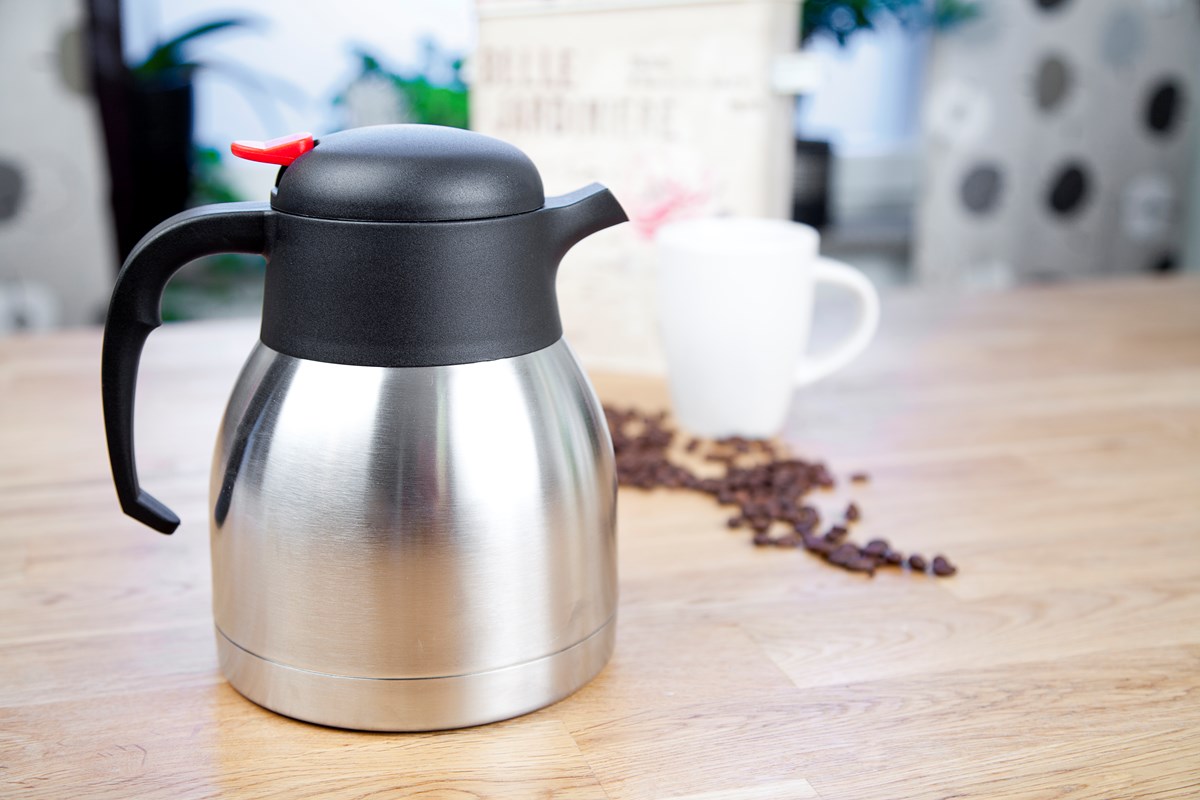 Termoskanna i rostfritt stål. Rymmer 1 liter.