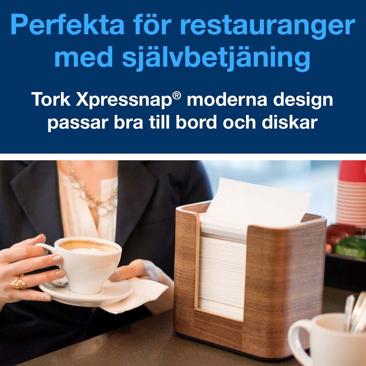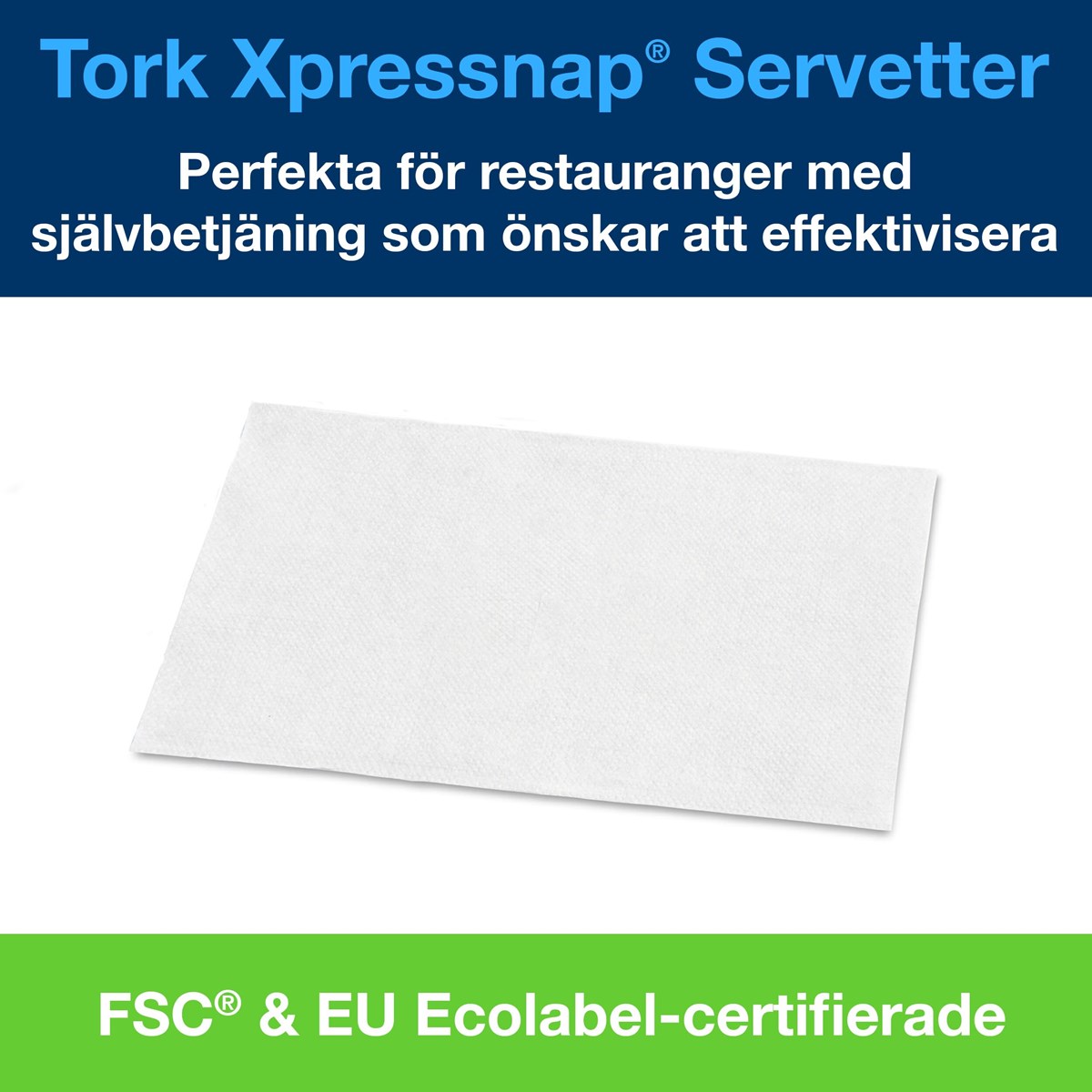 Hektiska miljöer med självservice behöver en balans mellan bekvämlighet och kvalitet – den tjocka 2-lagerskonstruktionen hos Tork Xpressnap® Extra Mjuk Dispenserservett ger dig båda två. Beställning och lagerhantering förenklas av att servetterna kan användas med alla Tork Xpressnap® Dispensrar. Det kostnadseffektiva systemet har arkvis utmatning och minskar förbrukningen med 25 % jämfört med traditionella dispensrar. Det förbättrar också hygienen då gästerna bara rör det de tar.