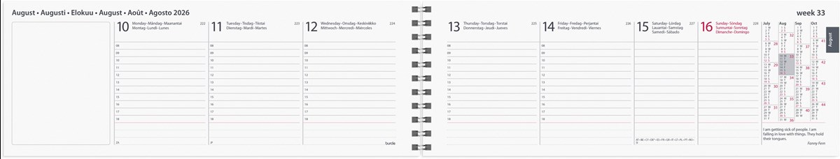Format: 255x95 mm. Layout: Stående. Vecka/uppslag. Timindelning 8-18. Kalendarium: 2025-12-22 - 2027-01-03. Omslag: Papper. Spiralbunden. Innehåll: Internationella helgdagar, Internationella helgdagar översikt, Årsöversikt/årsöversikter, Årsplan/årsplaner. Antal sidor: 120. Miljöinformation: FSC®.