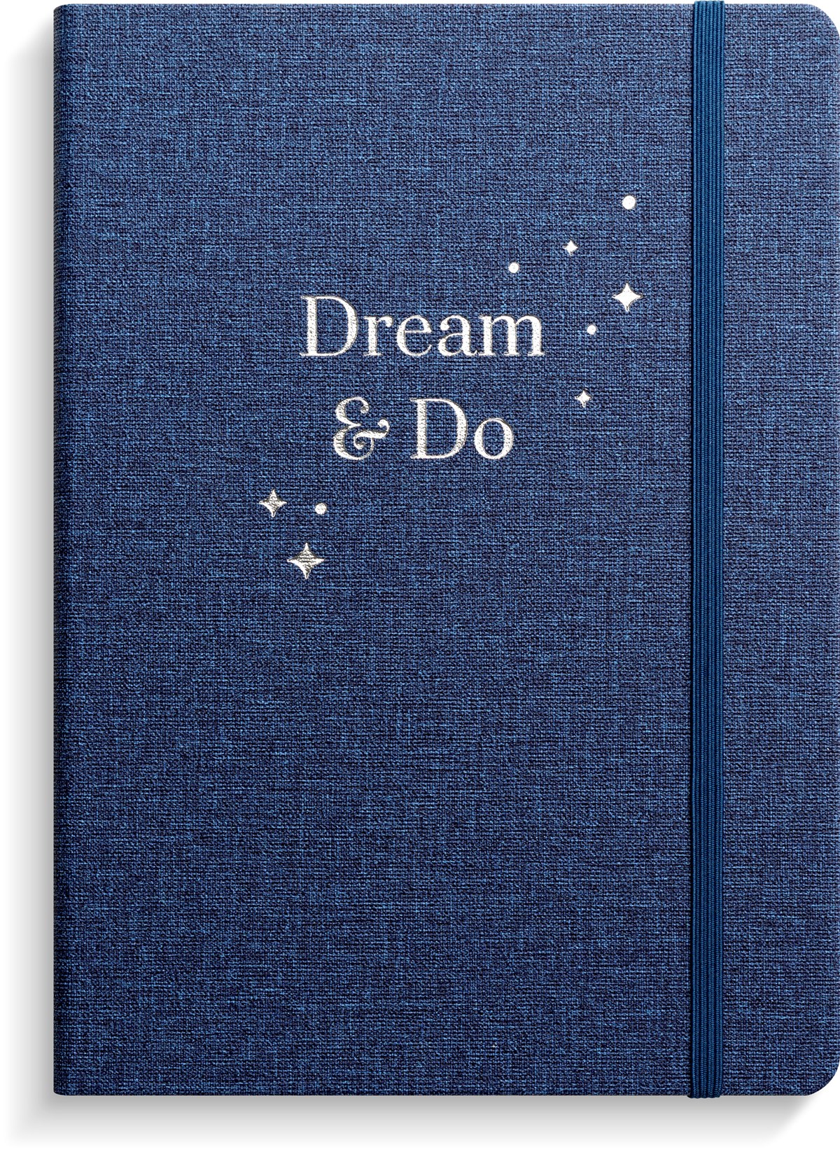 Inbunden odaterad kalender med två märkband. Omslag i blått konstläder och silverprägling. Ett planeringsverktyg för att uppnå sina drömmar och mål. Kalendern innehåller sidor med plats för mål, reflektioner, moodboards, checklistor, bucket lists, födelsedagar och anteckningar. Kalendern är uppbyggd för olika mål: årsmål, halvårsmål, samt delmål månads- och veckovis. Skriv ner månadens prestationer, utmaningar och förbättringar. Kalendern innehåller även prickade sidor för att locka fram användarens mest kreativa sidor. 100 g cremefärgat papper, 128 blad (256 sidor). FSC®-papper. Format: 165x233 mm.