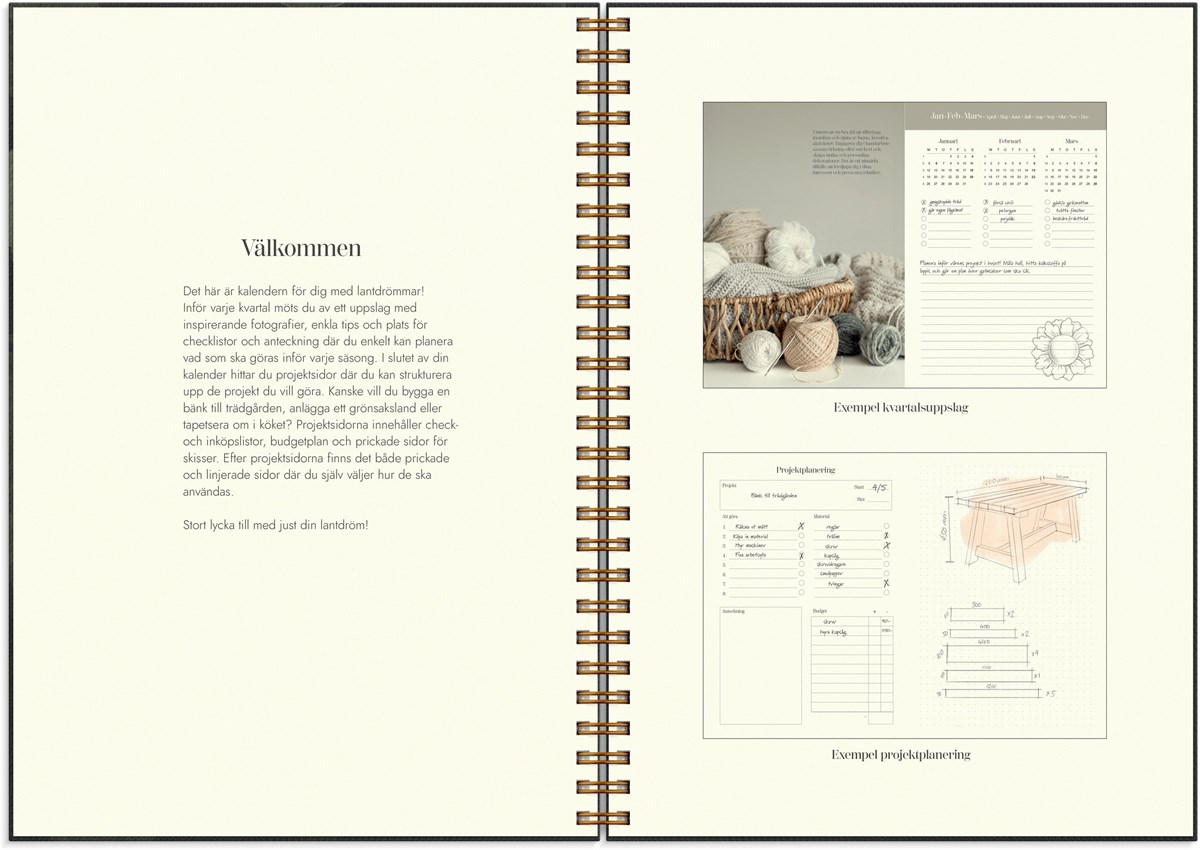 Inspireras och förverkliga dina drömmar samtidigt som du håller koll på din planering.  Inlagan har cremefärgat papper och det vackert illustrerade omslaget är som en dröm i sig. Månadsöversikt varje kvartal med checklista och anteckningsyta.