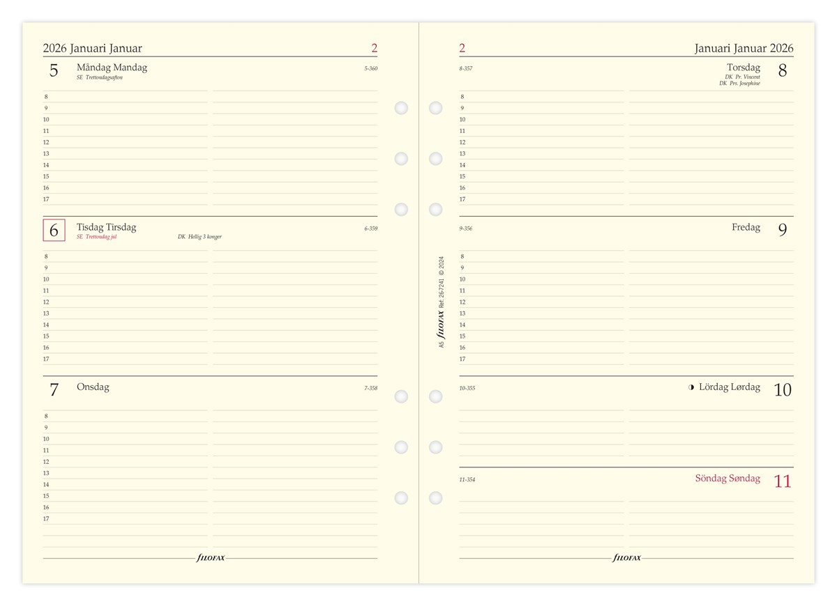 Dagbok Filofax A5 2026 vecka/uppslag