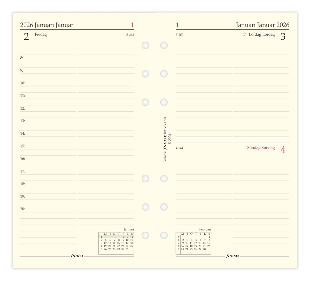Dagbok Filofax Personal 2026 dag/sida