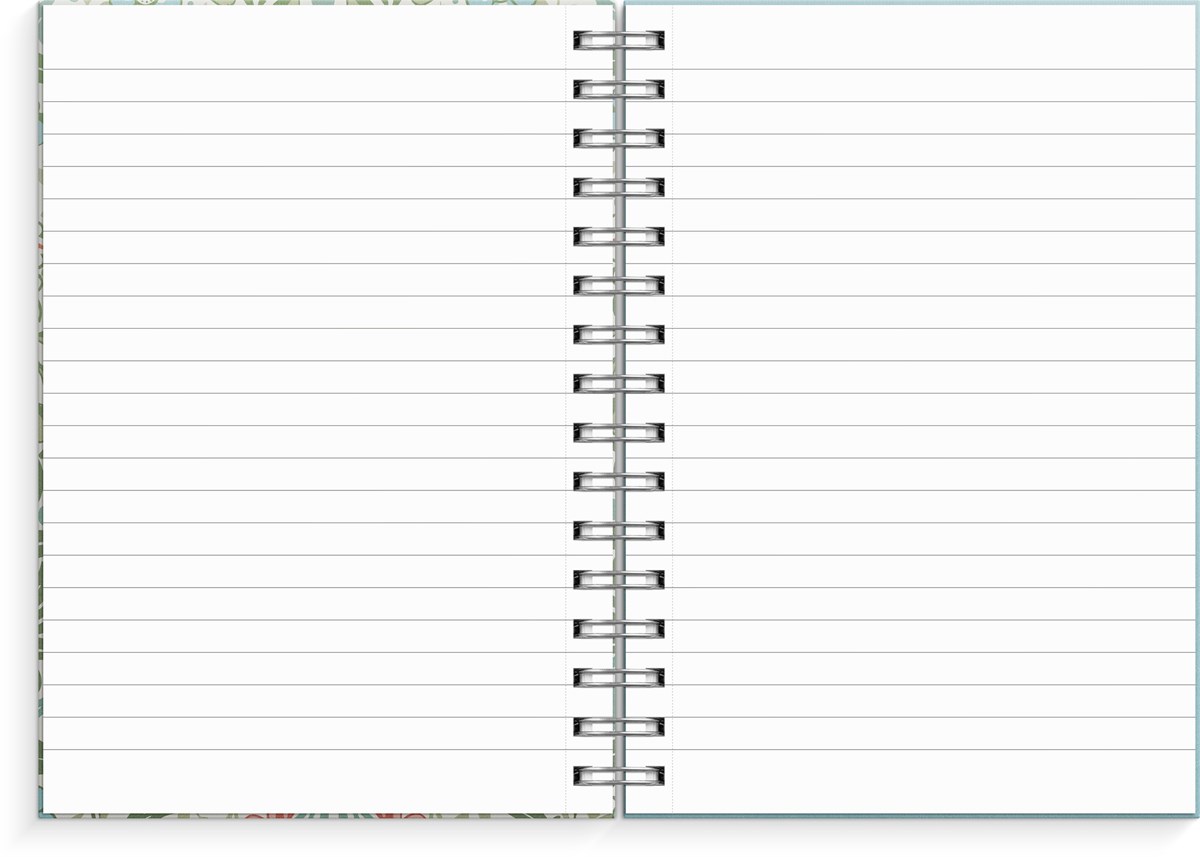 Format: A5. Layout: Linjerad. Omslag: Kartong. Spiralbunden. Antal sidor: 300. Pappersvikt: 70 g. Miljöinformation: FSC®.