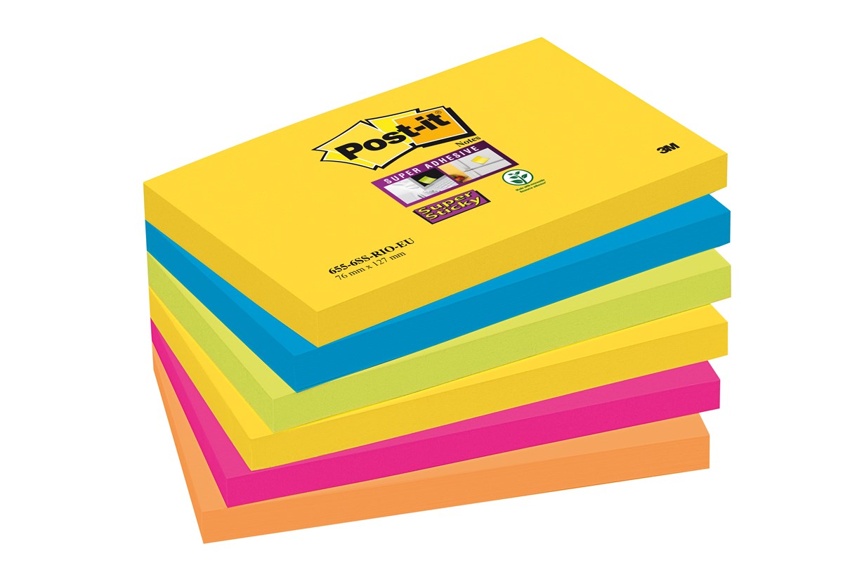 Vissa meddelanden måste helt enkelt hänga kvar. Då använder du bäst Post-it Super Sticky Notes. De går att sätta fast praktiskt taget överallt – på väggar, datorer, ojämna underlag, fönster, instrumentbrädor, tyg etc. Gör dig effektivare på din arbetsplats, i bilen, på resan eller när du behöver skriva ett meddelande eller en kom-ihåg-lapp. 90 blad/block.