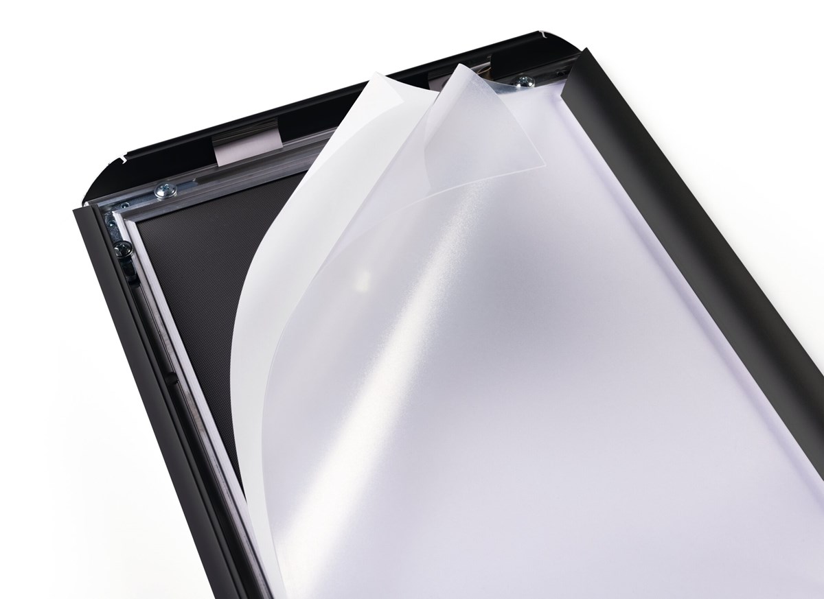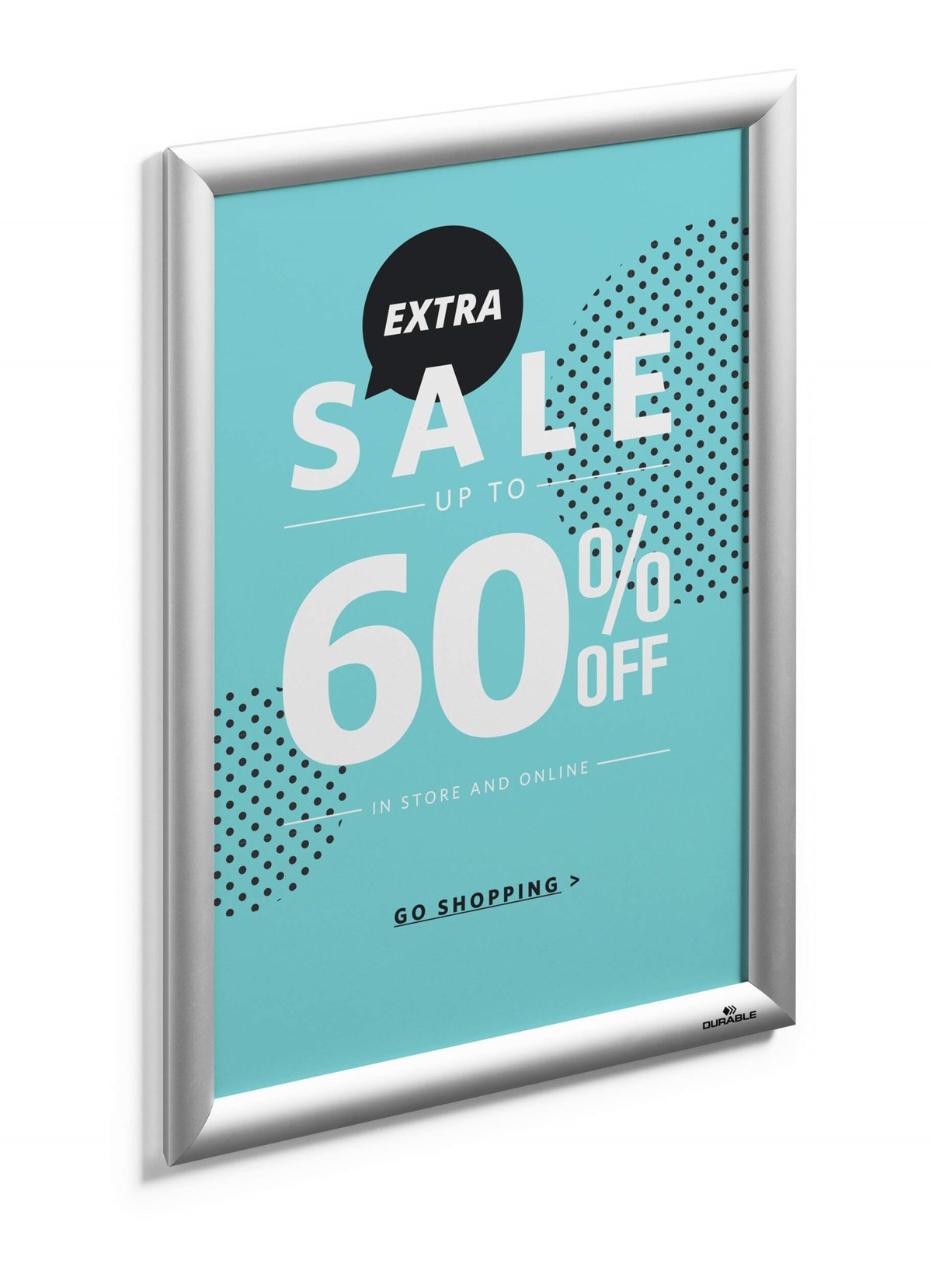 Klassiska snäppramar är användbara t.ex. på gym, kontor, hotell, mässor och i butiker för att på ett snyggt sätt visa information som behöver bytas ut ibland. Byt inlaga genom att fälla upp alla 4 sidoprofiler och tag bort den UV-tåliga och antireflekterande plastfronten som skyddar inlagan. Ramen är gjord av en 25 mm bred anodiserad aluminiumprofil, vilket gör aluminumytan mer hållbar. Klickramens baksidan är av tålig polystyren. Dolda hål för medföljande skruv och plugg samt 4 medföljande självhäftande remsor, för valfri väggmontering i stående eller liggande format.