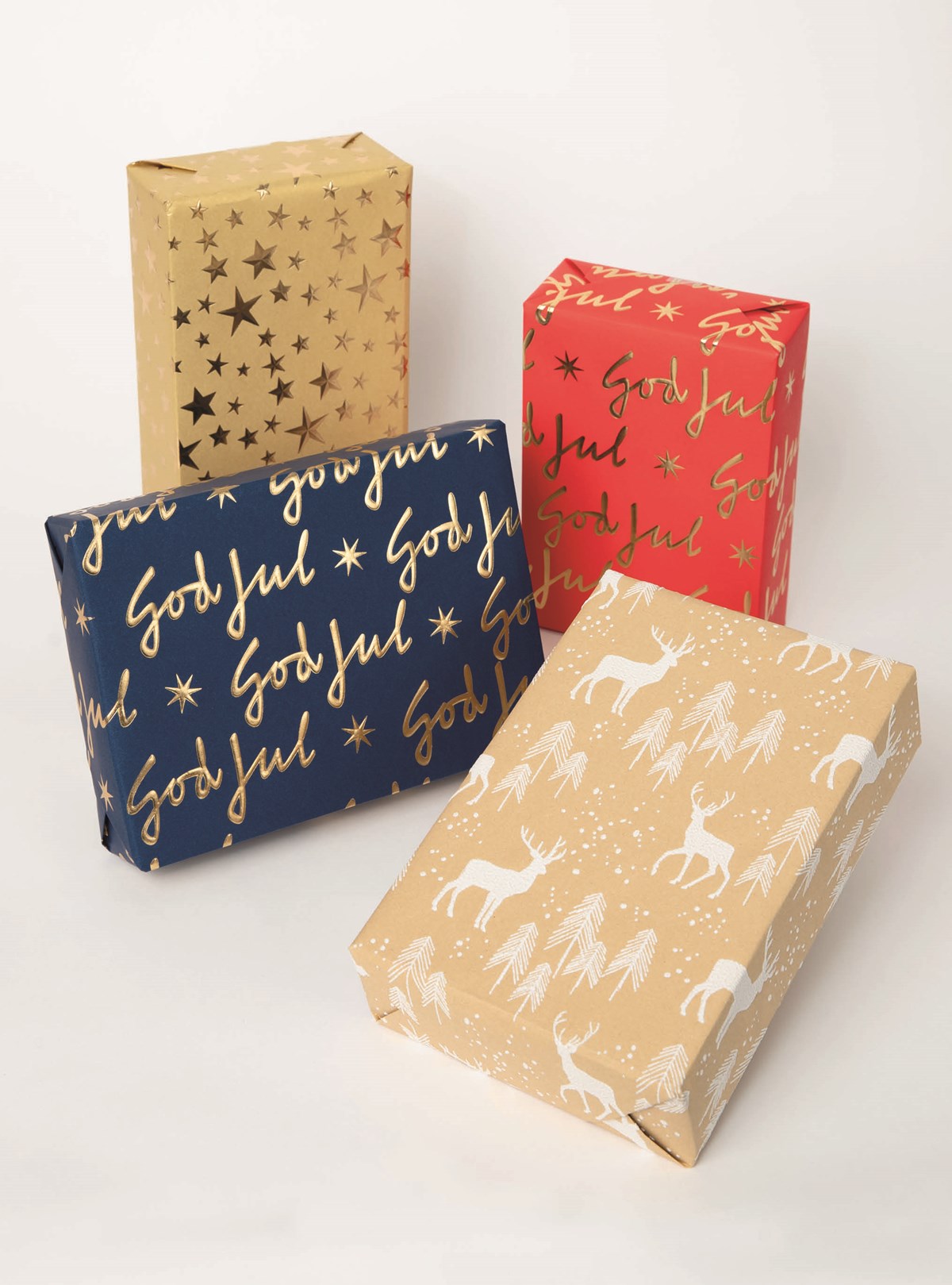 Svensktillverkat presentpapper av hög kvalitet. Mixade julmönster. Tryckt med vattenbaserade färger, allt för att minimera negativ påverkan på miljön. 80 g bestruket papper.