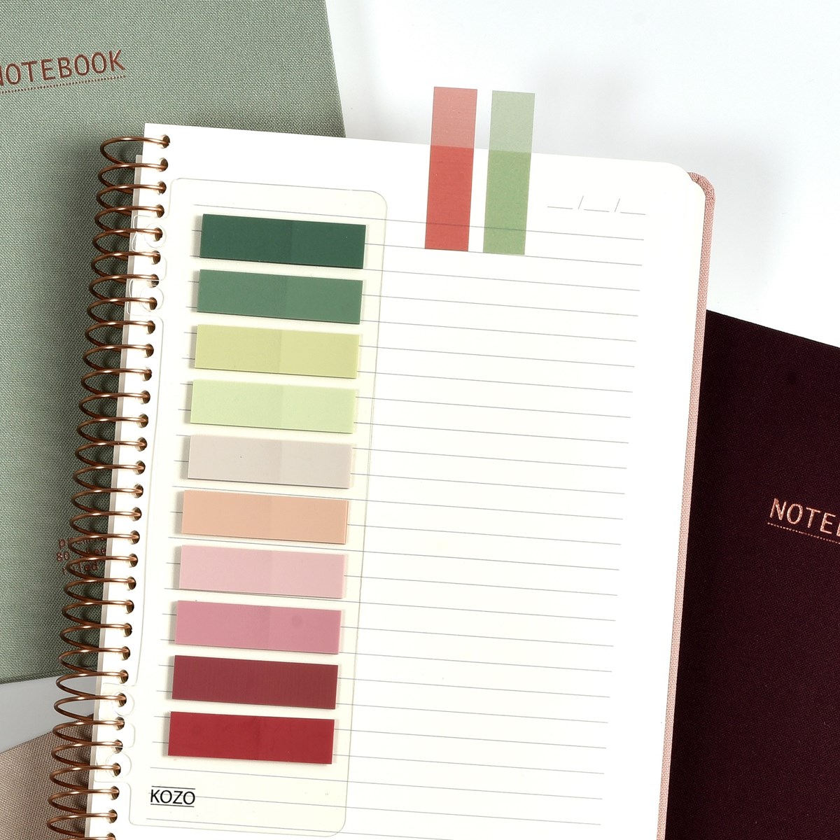 KOZO Indexflikar i snygga, neutrala färger är självhäftande och flyttbara för enkel märkning och organisering. Innehåller totalt 200 flikar i 10 olika trendfärger.
