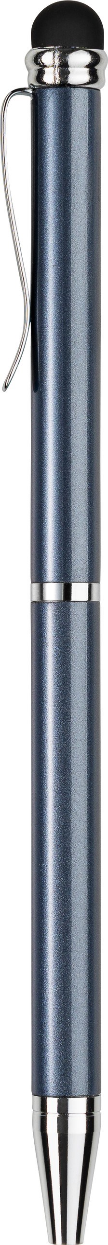 En kulspetspenna med en praktisk touch topp för din telefon eller surfplatta. Touchfunktionen är längst upp på pennan. Det är ett litet praktiskt verktyg för din kalender och underlättar din planering i teknikens värld. Nu tillgänglig i ett flertal metalliska färger! Pennan har blått bläck.Längd 11 cm.
