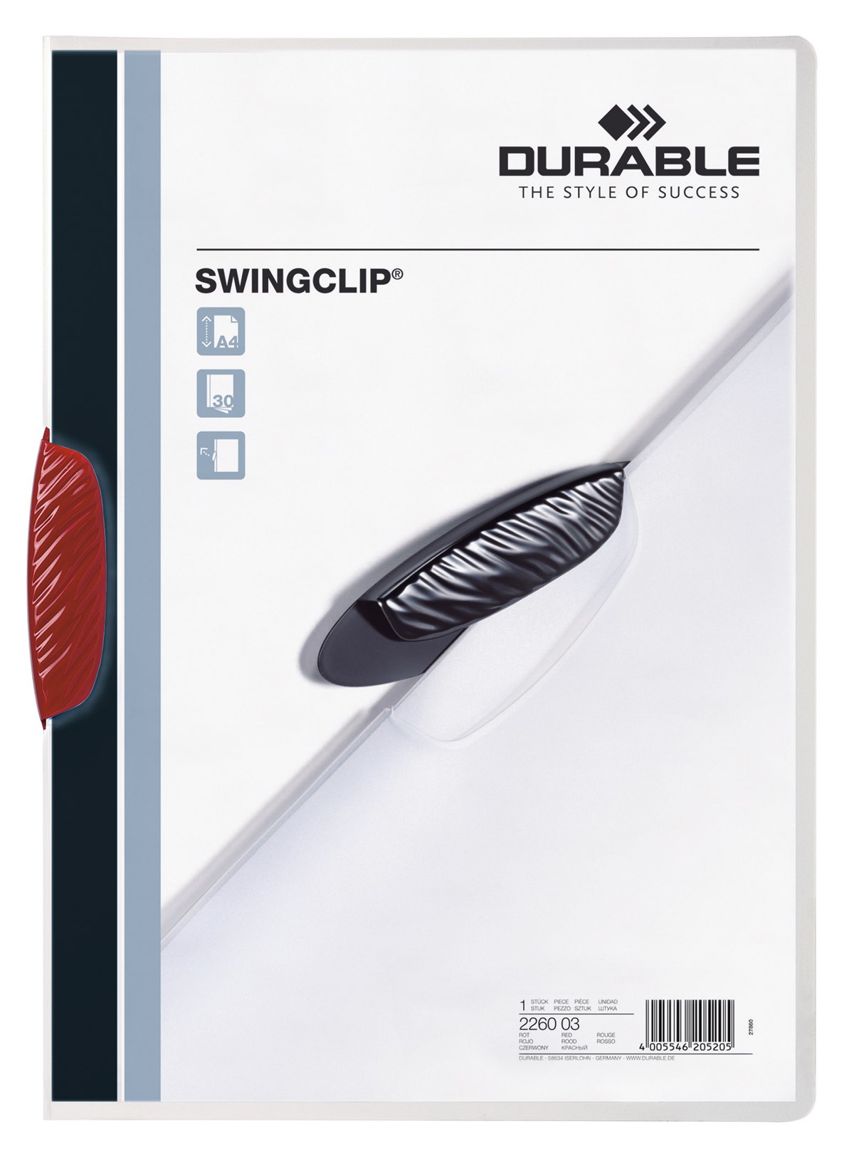 Klämmapp i kraftig, transparent PP-plast med färgad, svängbar klämma. Perfekt mapp för presentationer, offerter m.m. Utstansad framsida vilket gör att den ligger plant i utfällt läge vilket underlättar vid bläddring bland pappren. Rymmer upp till 30 ark. 25 st/förp.