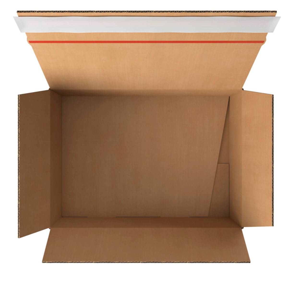 E-handelslådor med snabbotten som gör det lätt att resa och göra lådan redo för packning. En stark bottenlåsning som ger en stabil grund och en smart tejpremsa som ger en enkel och snabb förslutning. Lådan öppnas enkelt och smidigt med en rivremsa som dessutom gör det möjligt att återanvända lådan vid en eventuell retur. Lådan har en lätt vikt utan att ha tummat på kvalitén.