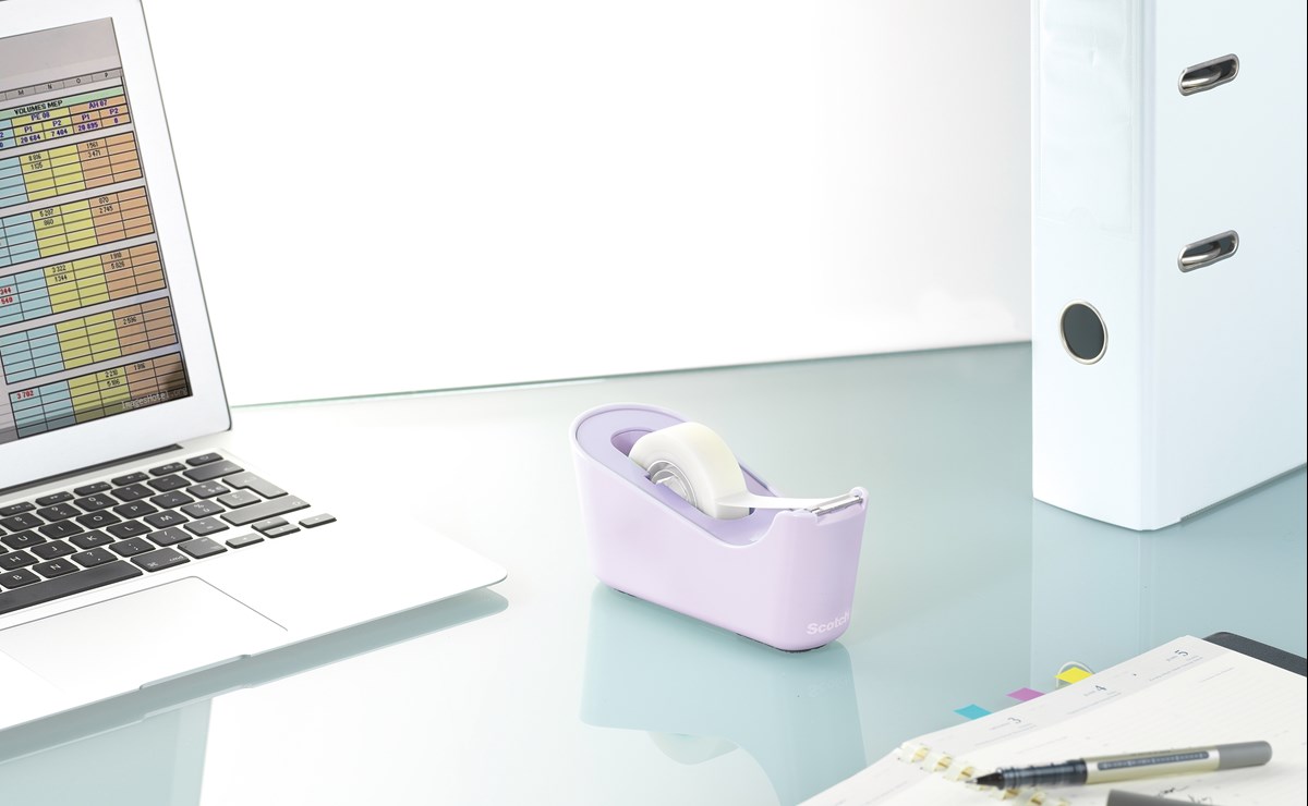 Stabil hållare som står stadigt på skrivbordet och tillåter enhandsgrepp vid avrivning av tejpen. För max 33 m x 19 mm tejp. En rulle Scotch Magic 810 tejp medföljer.