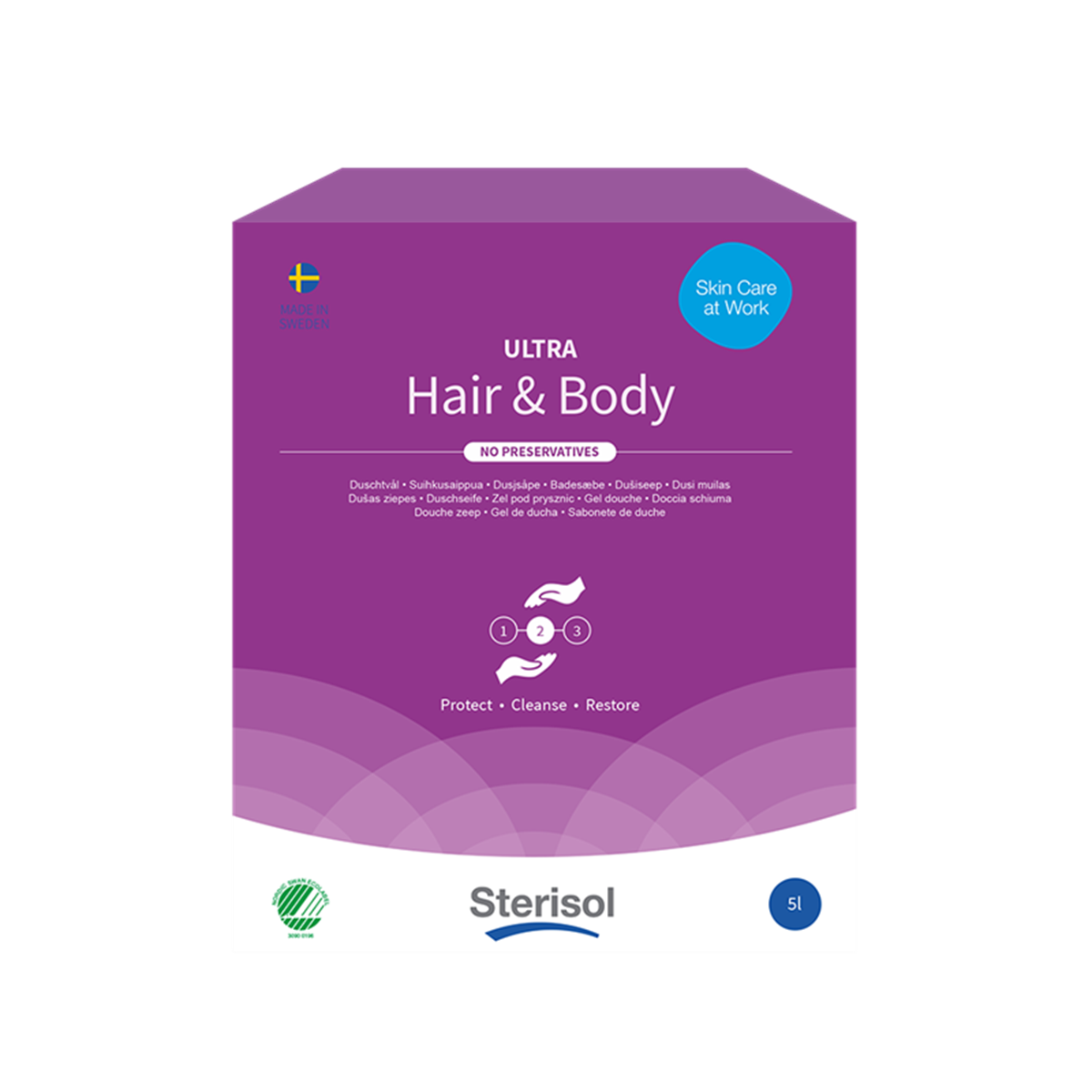 En duschtvål för skonsam och effektiv rengöring av hela kroppen. Den har konditionerande egenskaper som lämnar håret mjukt och smidigt. Produkten är en del av Sterisol System med lufttäta påsar som eliminerar behovet av konserveringsmedel i denna produkt. Påsarna byts enkelt och dispensern som kan köpas till är smidig att rengöra vilket förenklar underhållet för verksamheten.