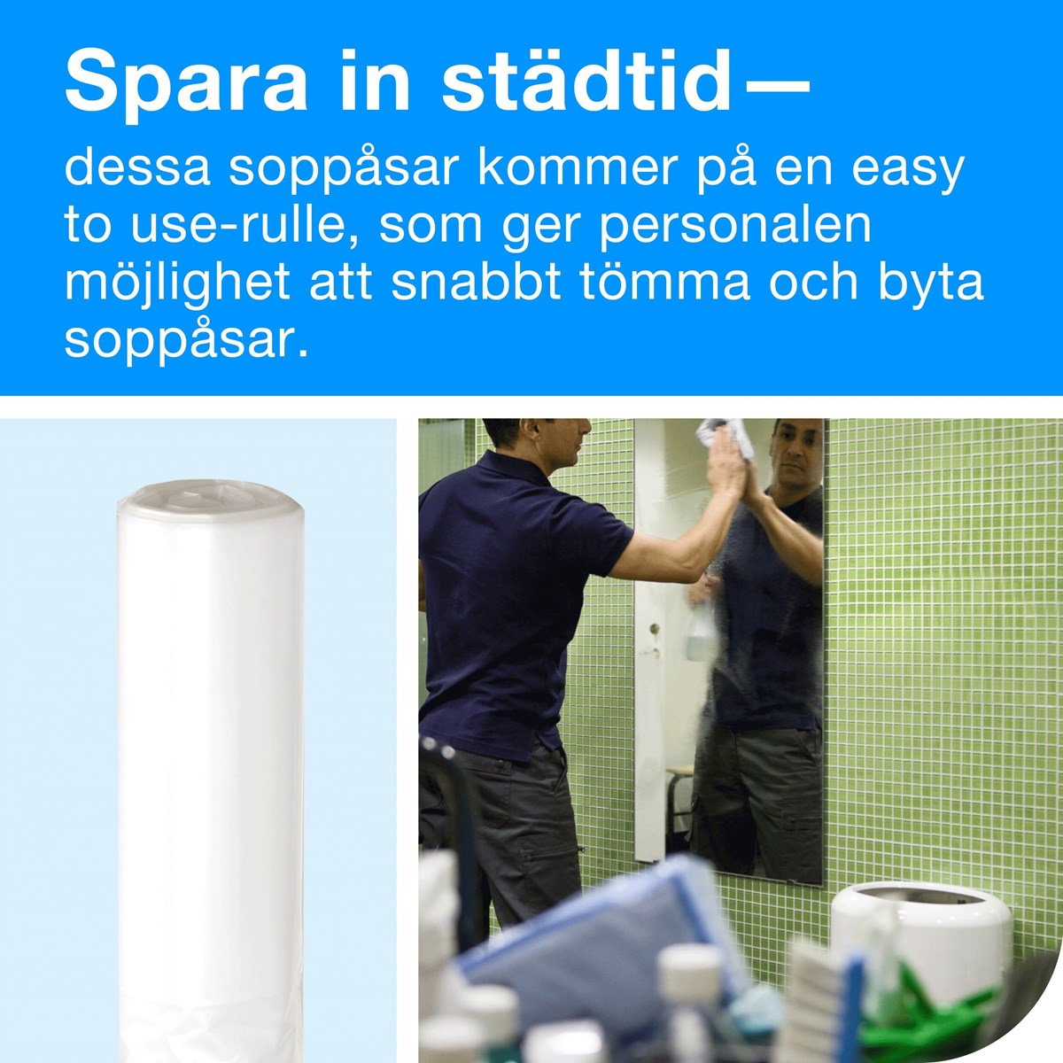 Framtagna för att det ska vara enkelt att tömma och fylla på papperskorgar Högkvalitativ, tjock kvalitet för utmärkt prestanda Levereras som rullar för enkel användning Högre kapacitet betyder färre byten