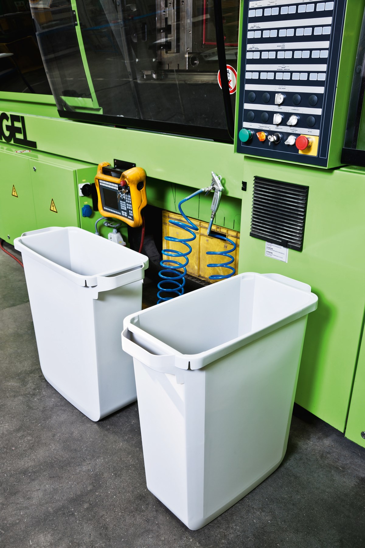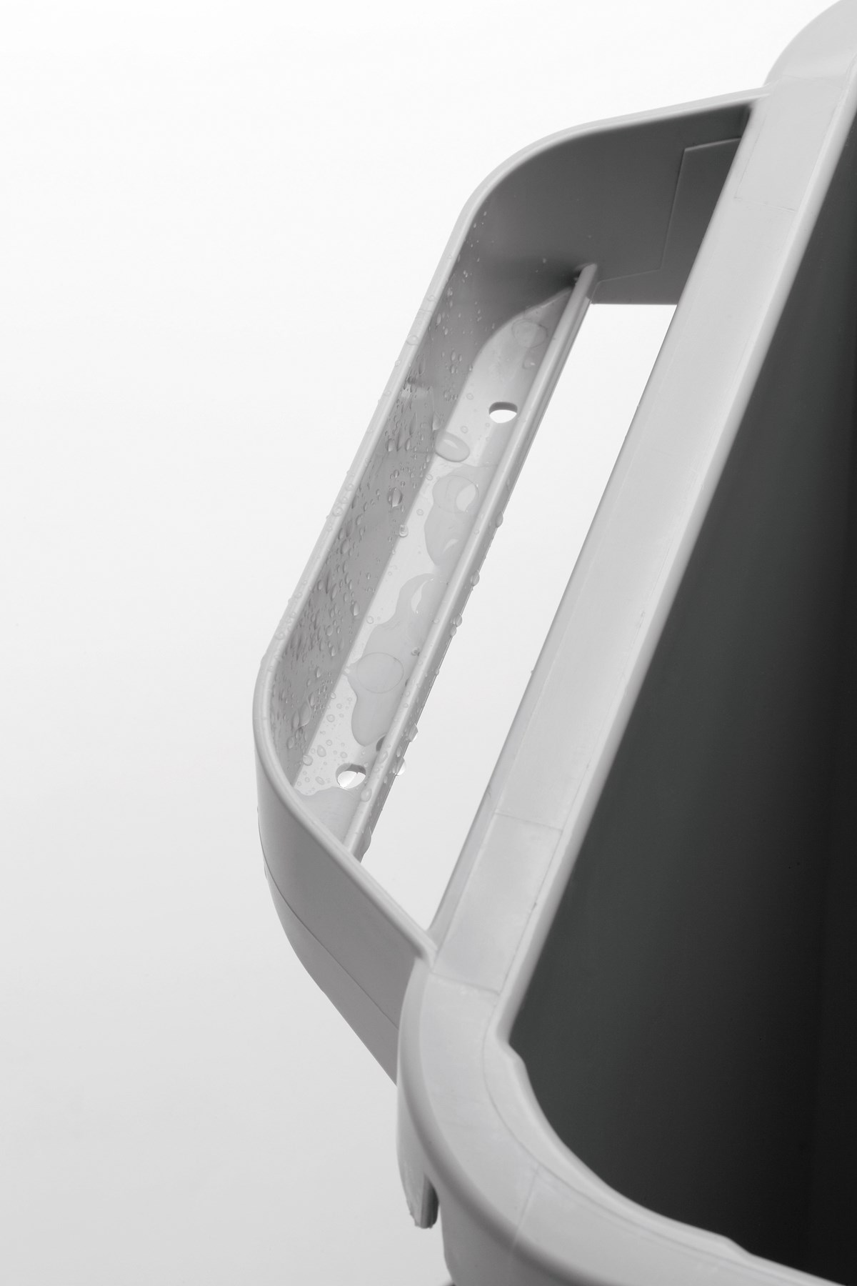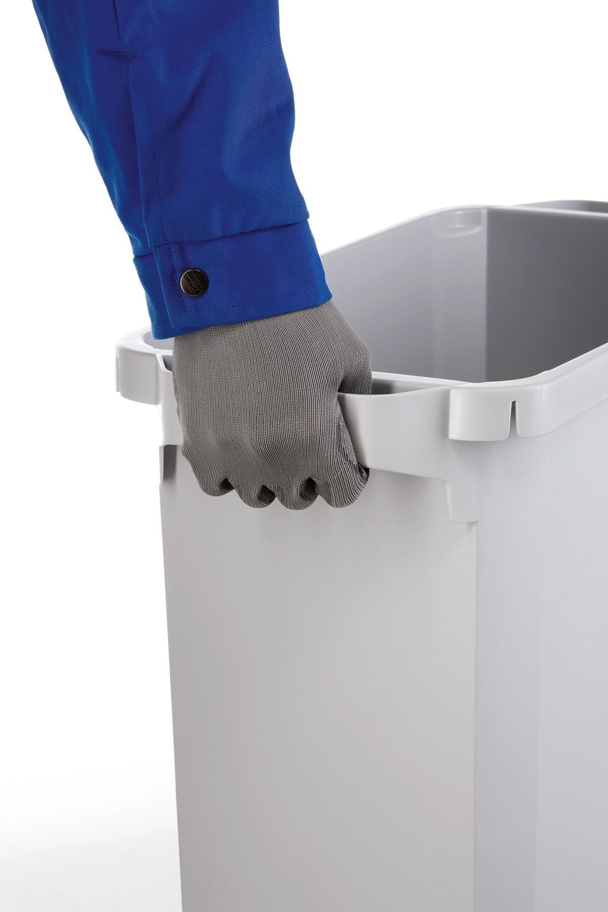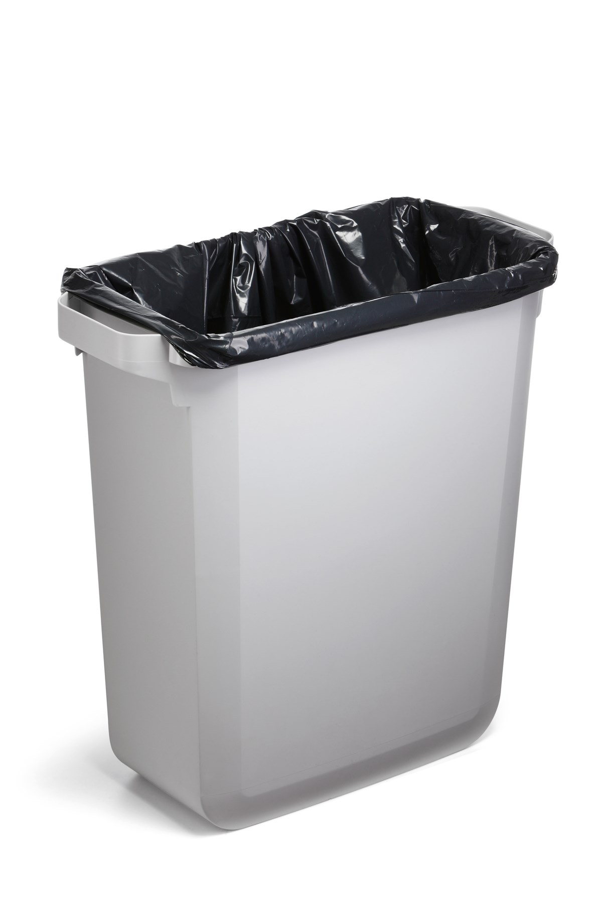 Rektangulär, 60-liters tunna av polypropen med ergonomiskt bärhandtag. Praktisk även för förvaring och transport av råmaterial inom handel och industri. Greppvänlig undersida förenklar lyft och tömning. Livsmedelsgodkänd. Klämspår i hörnen gör att sopsäcken sitter säkert. Mått (H x B x D): 600 x 590 x 282 mm. Lock köps separat.