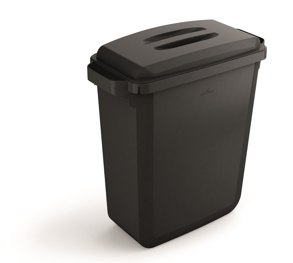 Locket DURABIN® LID ECO 60 är certifierad med den tyska miljömärkningen Blue Angel som ställer höga krav på miljövänlig produktdesign och är sedan 1978 en pålitlig guide för en mer hållbar konsumtion. Plasten som detta sopkärl är tillverkad av består av en hög andel insamlad återvunnen plast samtidigt som den har lång livslängd och är fullt återvinningsbar. Användningsområdena för tunnan med greppvänliga handtag med dräneringshål är många - som stor papperskorg, återvinningssortering, korg för upphittade kläder etc.