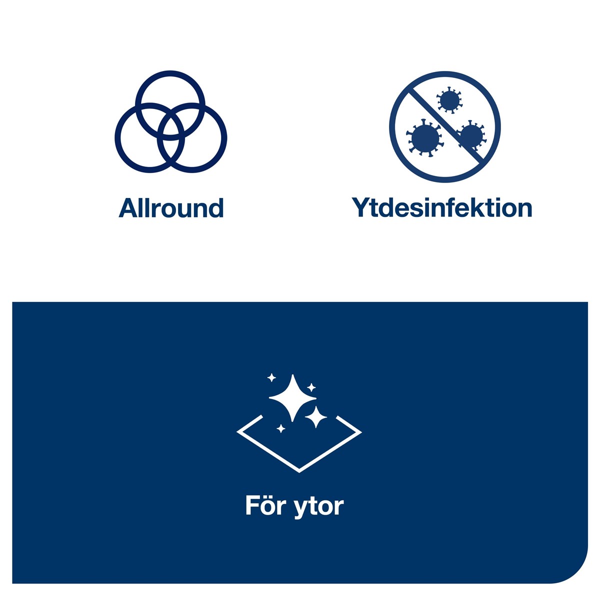 Dödar 99,99 % av bakterierna inom fem minuter Dödar 99,99 % av jästorganismer inom fem minuter Dödar 99,99 % höljeförsedda virus inom fem minuter, inklusive coronavirus Biologiskt nedbrytbar formula Godkänd för ytor med livsmedelskontakt