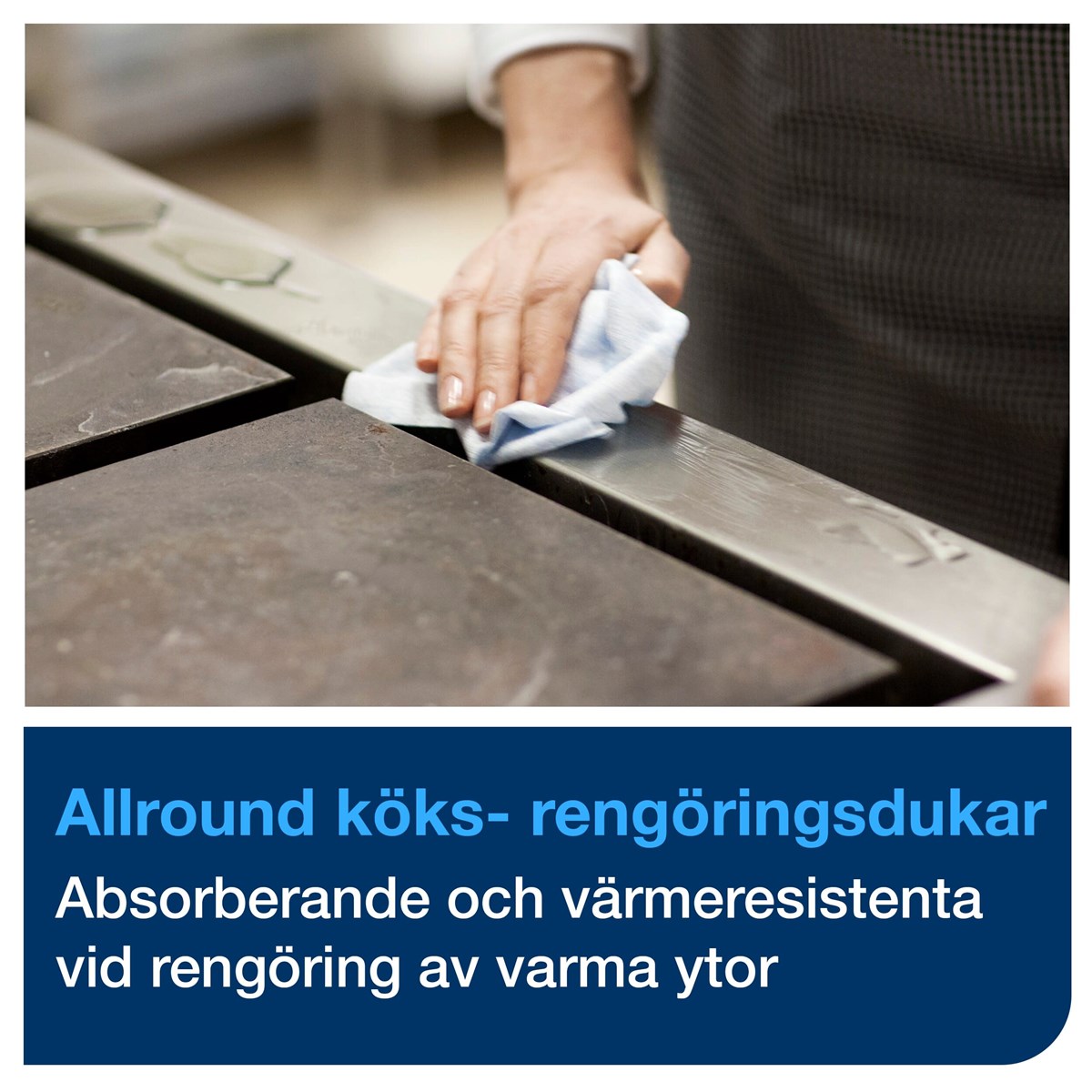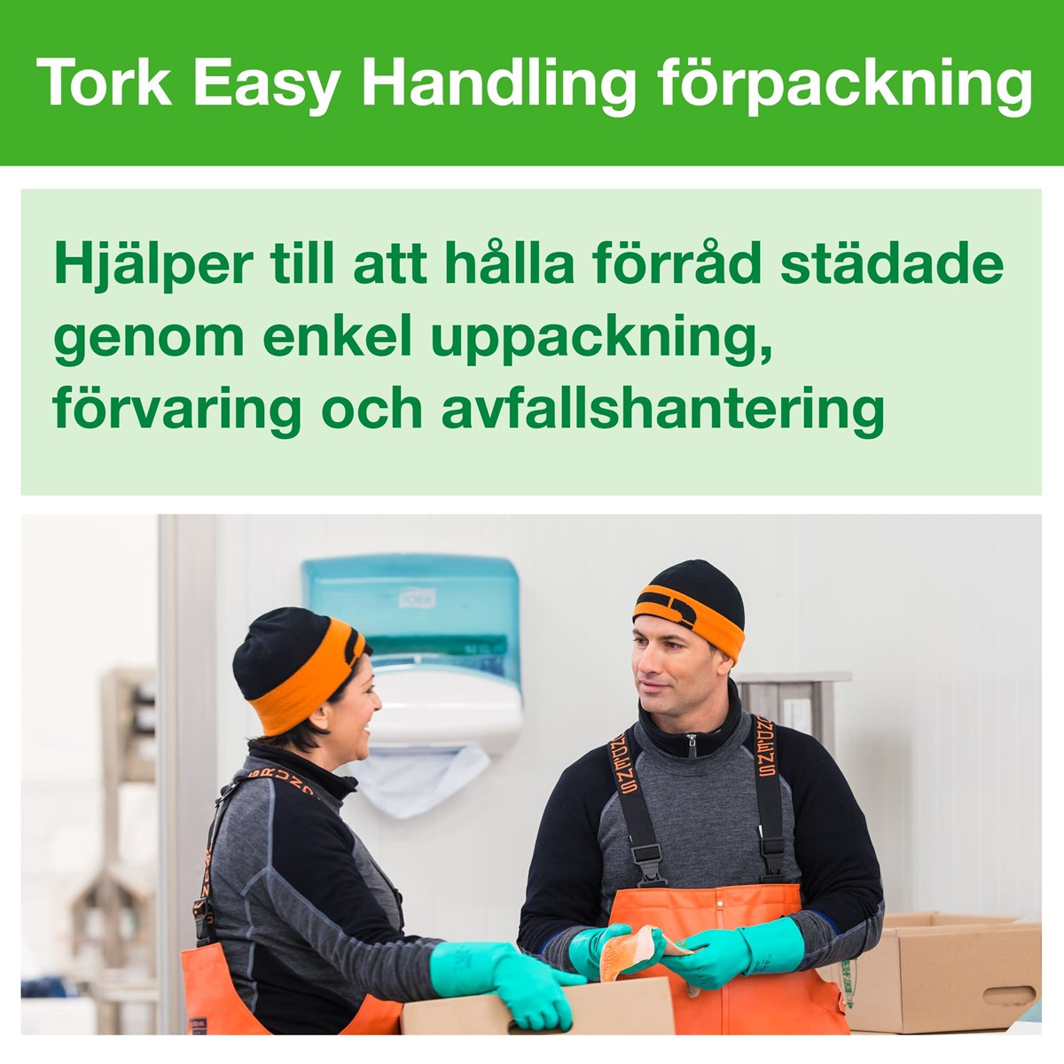 Allround-dukar för alla sorters spill i köket Tåliga och extra absorberande Värmebeständiga Biobaserad design och återvunnen förpackning för minskad miljöpåverkan Tork Easy Handling® förpackning för enklare förpackningshantering