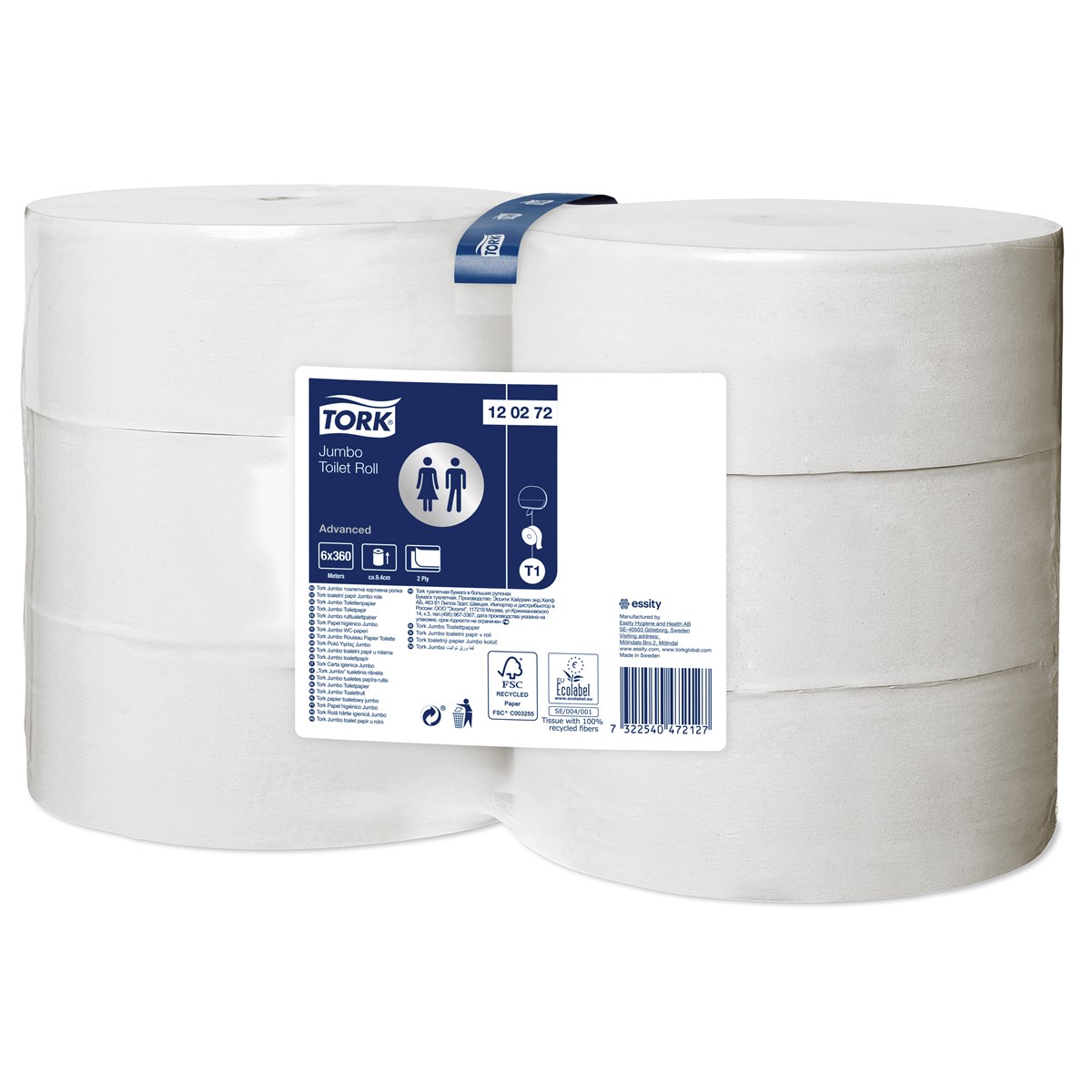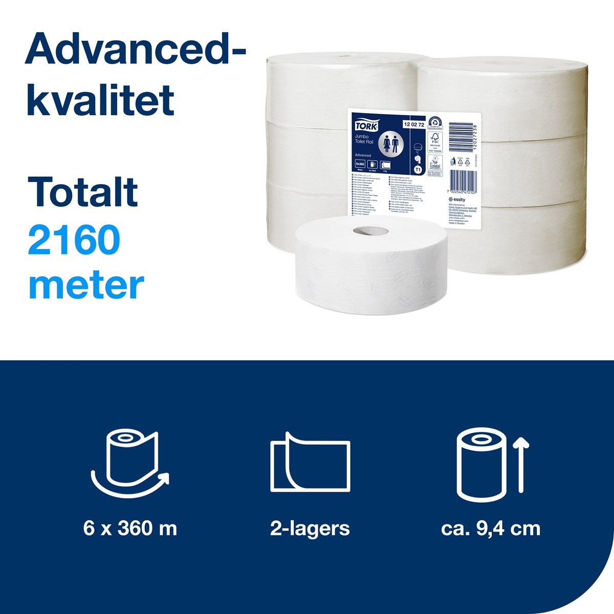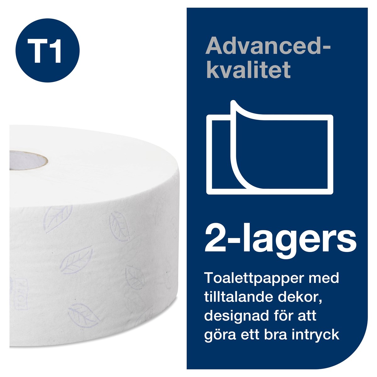 Systemet Tork Jumbo innebär effektivt utnyttjande av tiden och minskade kostnader och erbjuder mycket mer toalettpapper än standardrullar. Tork Jumbo toalettpapper med 2 lager skapar en god balans mellan kostnad och prestanda och passar perfekt för platser med hög besöksfrekvens.